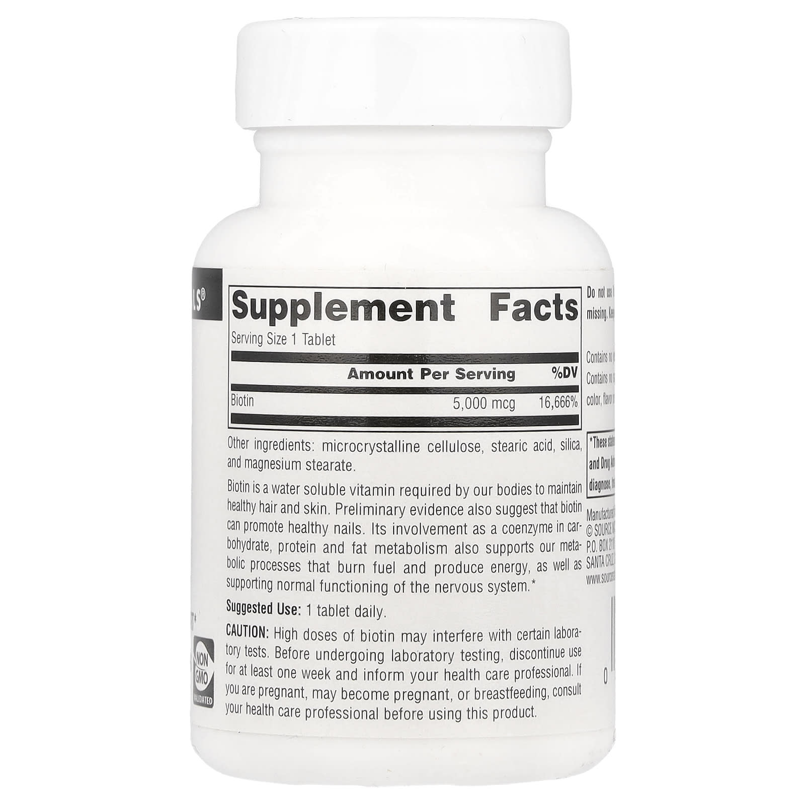 Source Naturals Biotina 5.000 mcg 60 Comprimidos – Source Naturals Suplementos Cabelos, Pele e Unhas Vitamina B7 (Biotina).