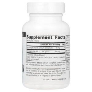 Source Naturals Bromelina 600 GDU/g 60 Comprimidos – Source Naturals Suplementos Saúde Intestinal Enzimas Digestivas Bromelain.