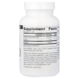 A vitamina C, também conhecida como ácido ascórbico, é o suplemento vitamínico mais comumente usado. Ele desempenha uma função importante na formação do colágeno (uma proteína estrutural do tecido conjuntivo), no metabolismo de aminoácidos e na síntese de hormônios, e na utilização de muitos nutrientes, como ácido fólico e ferro. É também um fator fundamental para o sistema imunológico do corpo. Este produto proporciona uma liberação gradual durante um período prolongado.