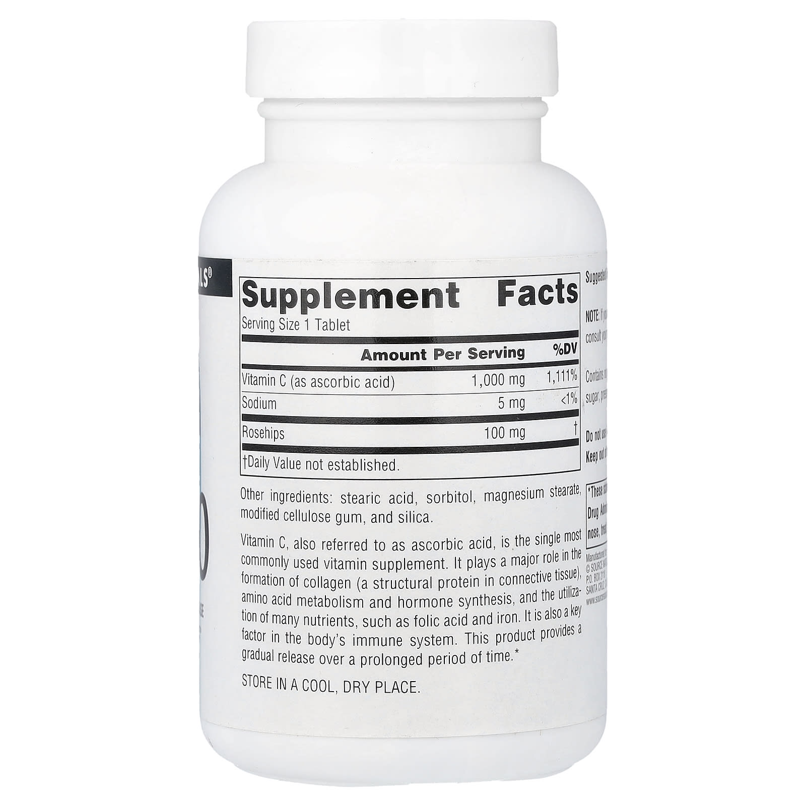 Source Naturals C-1000 100 tabletes – Source Naturals Suplementos Vitaminas Vitamina C Saúde Gripe e Resfriado.