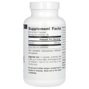 Source Naturals Carvão Ativado 100% Puro 260 mg 200 Cápsulas