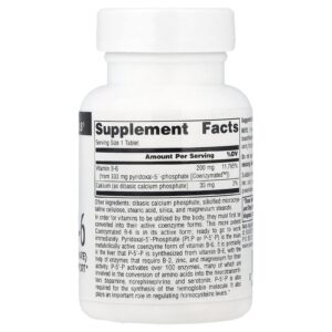 Para que as vitaminas sejam utilizadas pelo corpo, elas devem primeiro ser convertidas em suas formas ativas de coenzima. A B-6 Coenzimada mais potente está em sua forma ativa; pronto para trabalhar imediatamente. O Fosfato de Piridoxal (PLP ou P-5′-P) é a principal forma de coenzima metabolicamente ativa da vitamina B-6. É principalmente no fígado que a P-5′-P é sintetizada a partir da vitamina B-6, com a ajuda de enzimas que requerem B-2, zinco e magnésio para sua atividade. O P-5′-P ativa mais de 100 enzimas, muitas das quais estão envolvidas na conversão de aminoácidos nos neurotransmissores dopamina, noradrenalina e serotonina. P-5′-P também é necessário para a síntese da molécula de hemoglobina. Também desempenha uma função importante na regulação dos níveis de homocisteína.