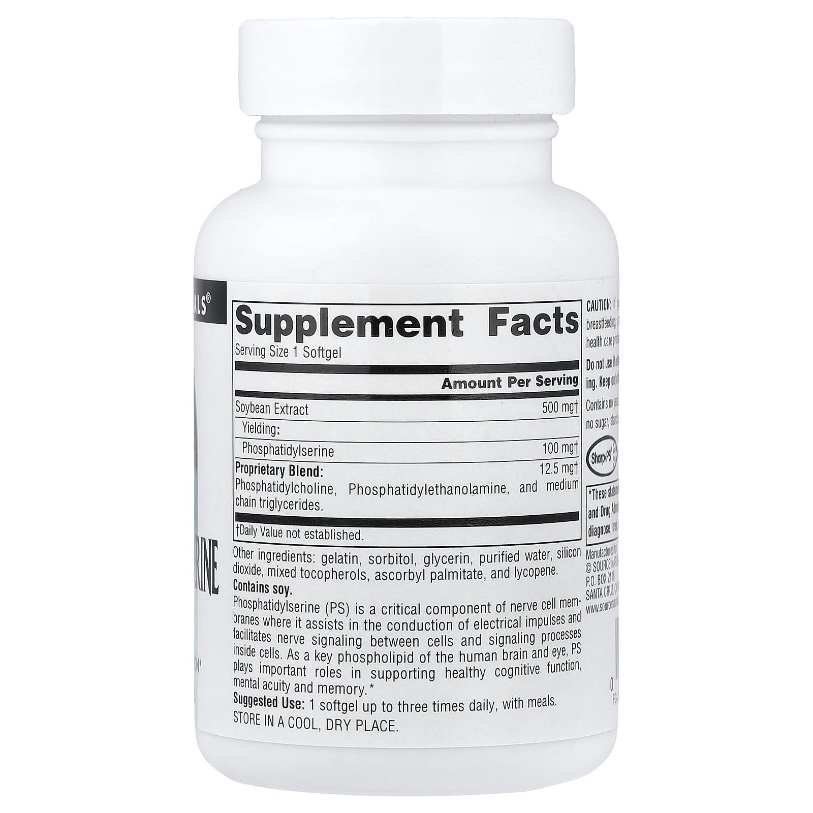 Source Naturals Complexo de Fosfatidil serina 500 mg 60 Cápsulas Softgel – Source Naturals Suplementos Fosfolipídeos Fosfatidilserina.