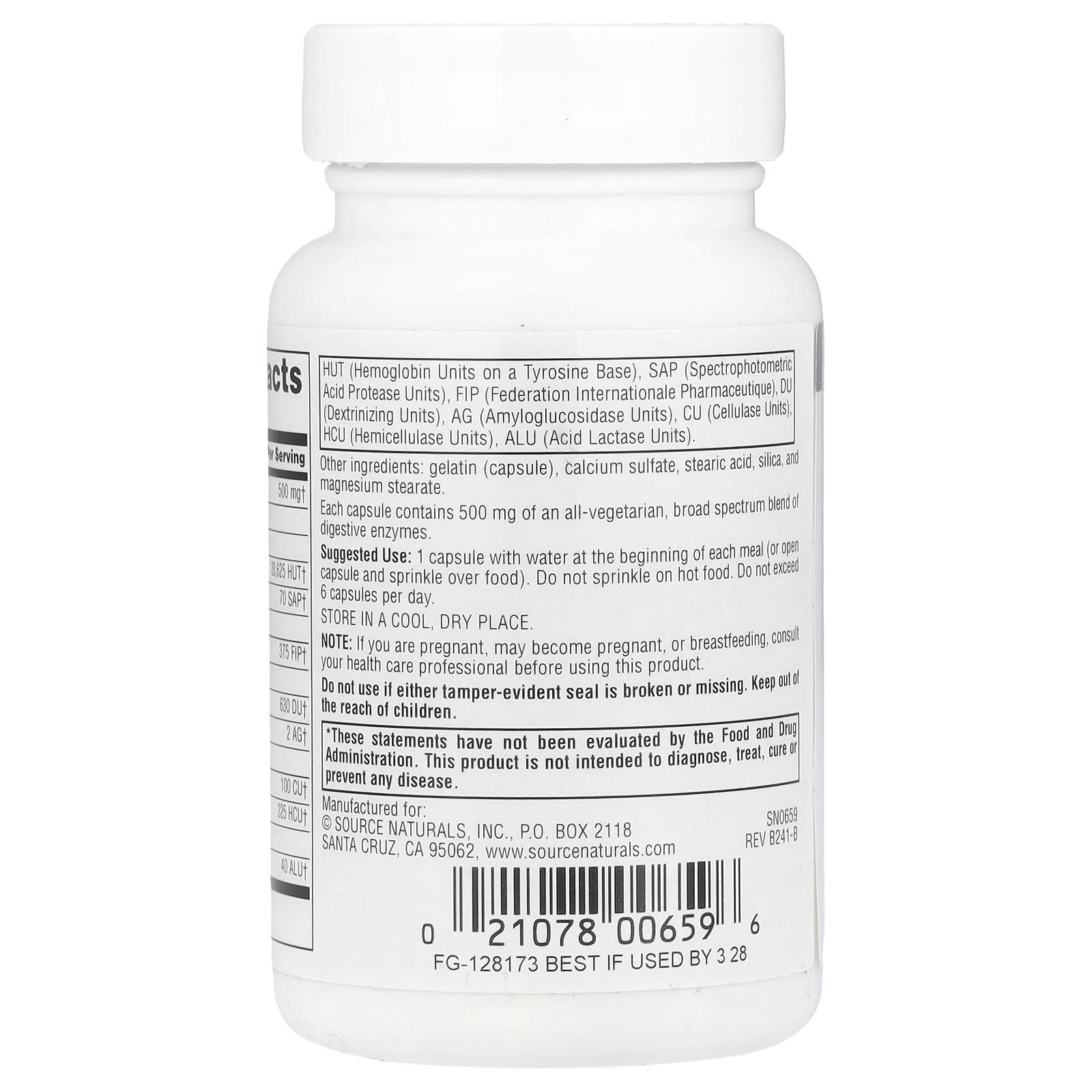 Source Naturals Daily Essential Enzymes® 500 mg 60 Cápsulas – Source Naturals Suplementos Saúde Intestinal Enzimas Digestivas.