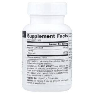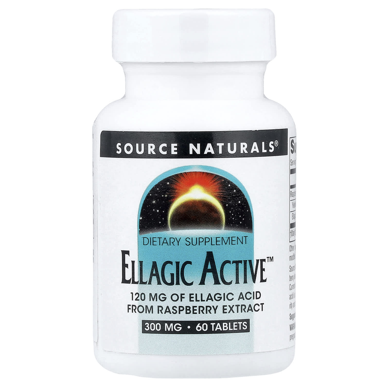 ELLAGIC ACTIVE ™ da Source Naturals é um extrato de folhas de framboesa que contém 120 mg de ácido elágico por comprimido. Pesquisas atuais in vitro e em animais demonstraram que o ácido elágico é um poderoso antioxidante que pode reforçar a integridade do DNA e promover a saúde celular em geral.