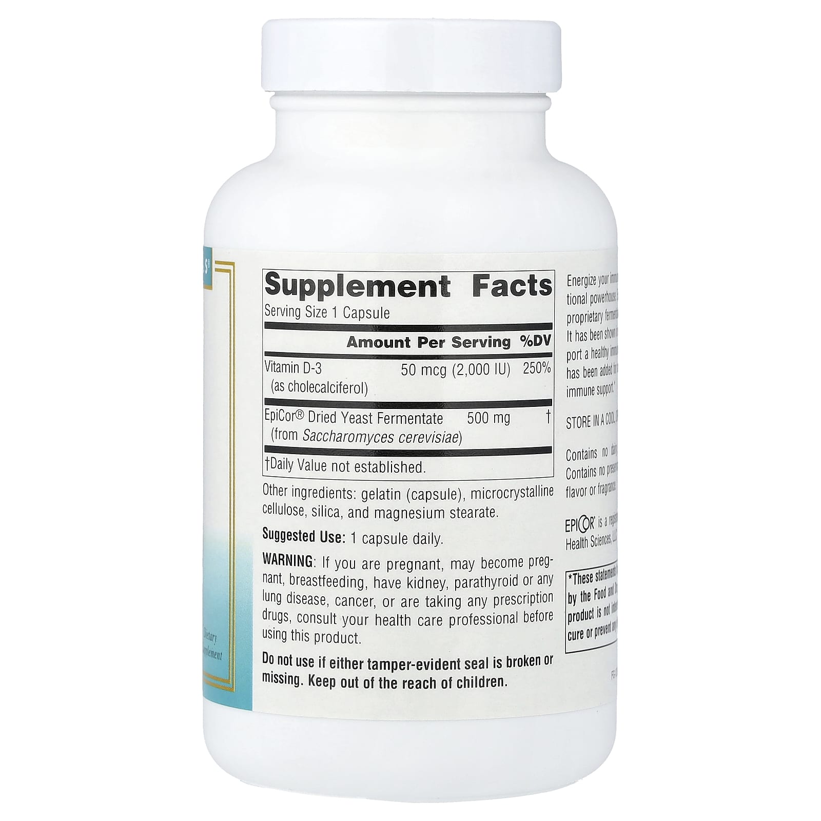 Energize seu sistema imunológico com esta potência nutricional. EpiCor® é produzido por meio de um processo patenteado de fermentação e secagem. Estudos científicos demonstraram que ele contribui para uma resposta imunológica saudável. A vitamina D-3 foi adicionada para reforçar ainda mais o poderoso suporte imunológico.