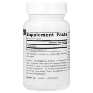 A própolis é uma substância natural produzida pelas abelhas a partir de resinas, ou seja, as secreções gomas de algumas árvores e outras plantas. Por milhões de anos, as abelhas revestem a superfície interna de suas colmeias com própolis. Acredita-se que essa prática protege a colmeia contra contaminação. A Source Naturals fornece um extrato de própolis natural de abelha.