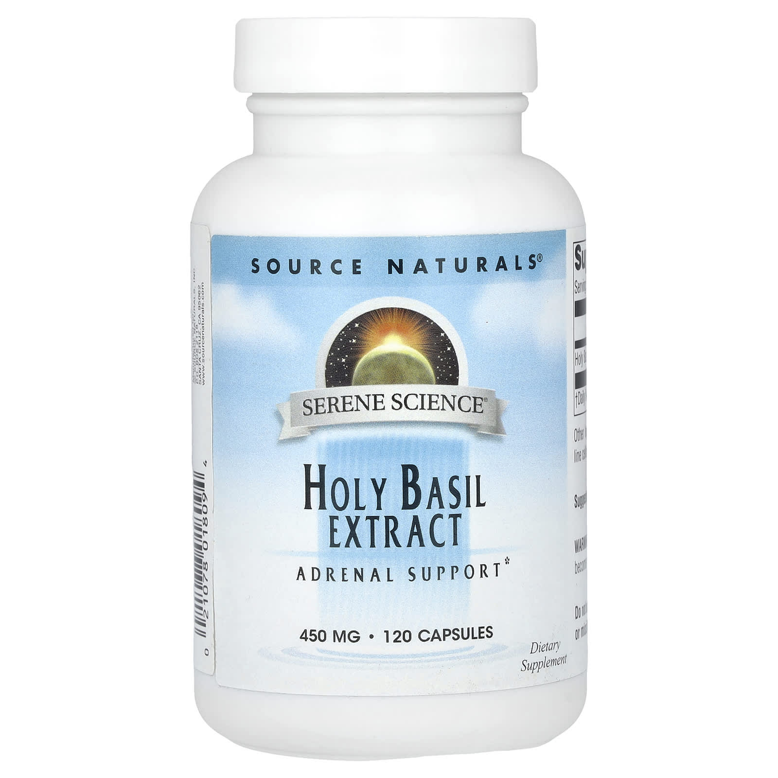 Source Naturals Extrato de Tulsi 450 mg 120 Cápsulas – Source Naturals Suplementos Ervas Ervas Ayurvédicas Manjericão-santo (Tulsi).
