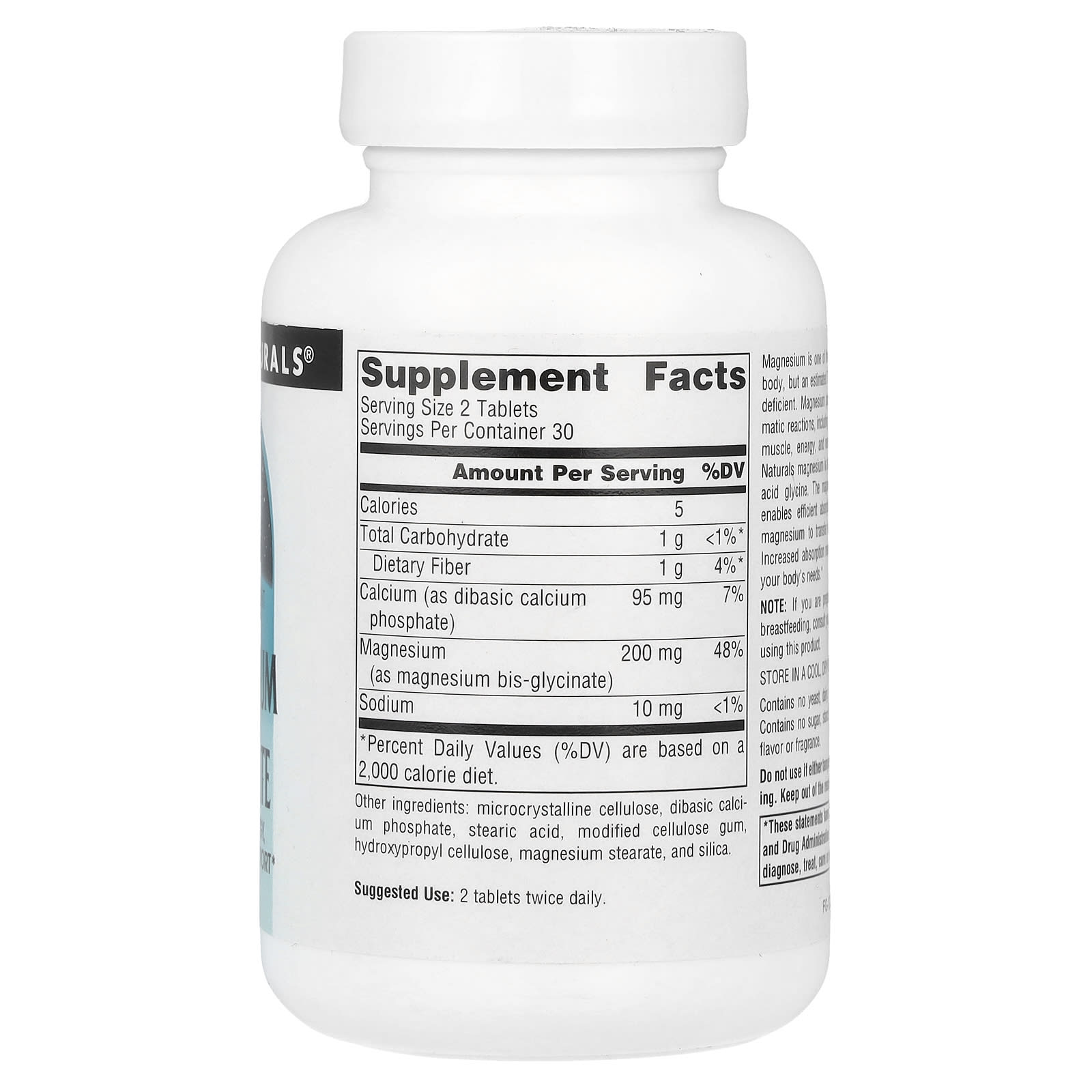 Source Naturals Glicinato de Magnésio 60 Comprimidos – Source Naturals Suplementos Minerais Magnésio Glicinato de Magnésio.
