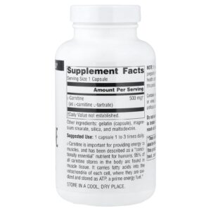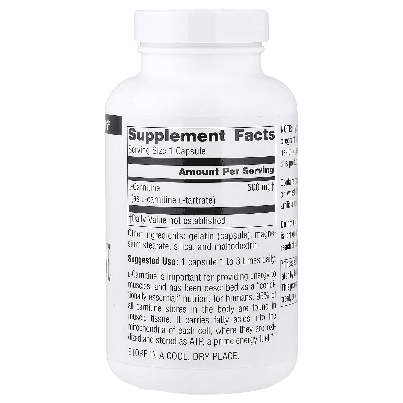 Source Naturals L-Carnitina 500 mg 120 Cápsulas – Source Naturals Suplementos Aminoácidos L-carnitina.