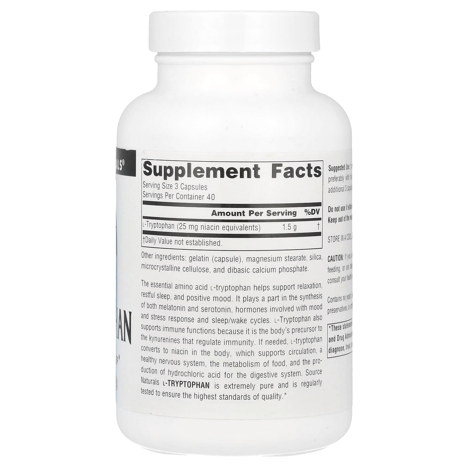 Source Naturals L-triptofano 500 mg 120 Cápsulas – Source Naturals Suplementos Sono Triptofano.