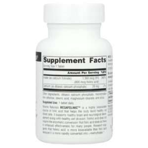 Source Naturals MegaFolinic™ 800 mcg 120 Comprimidos – Source Naturals Suplementos Vitaminas Vitamina B Vitamin B9 (Folate – Folic Acid).