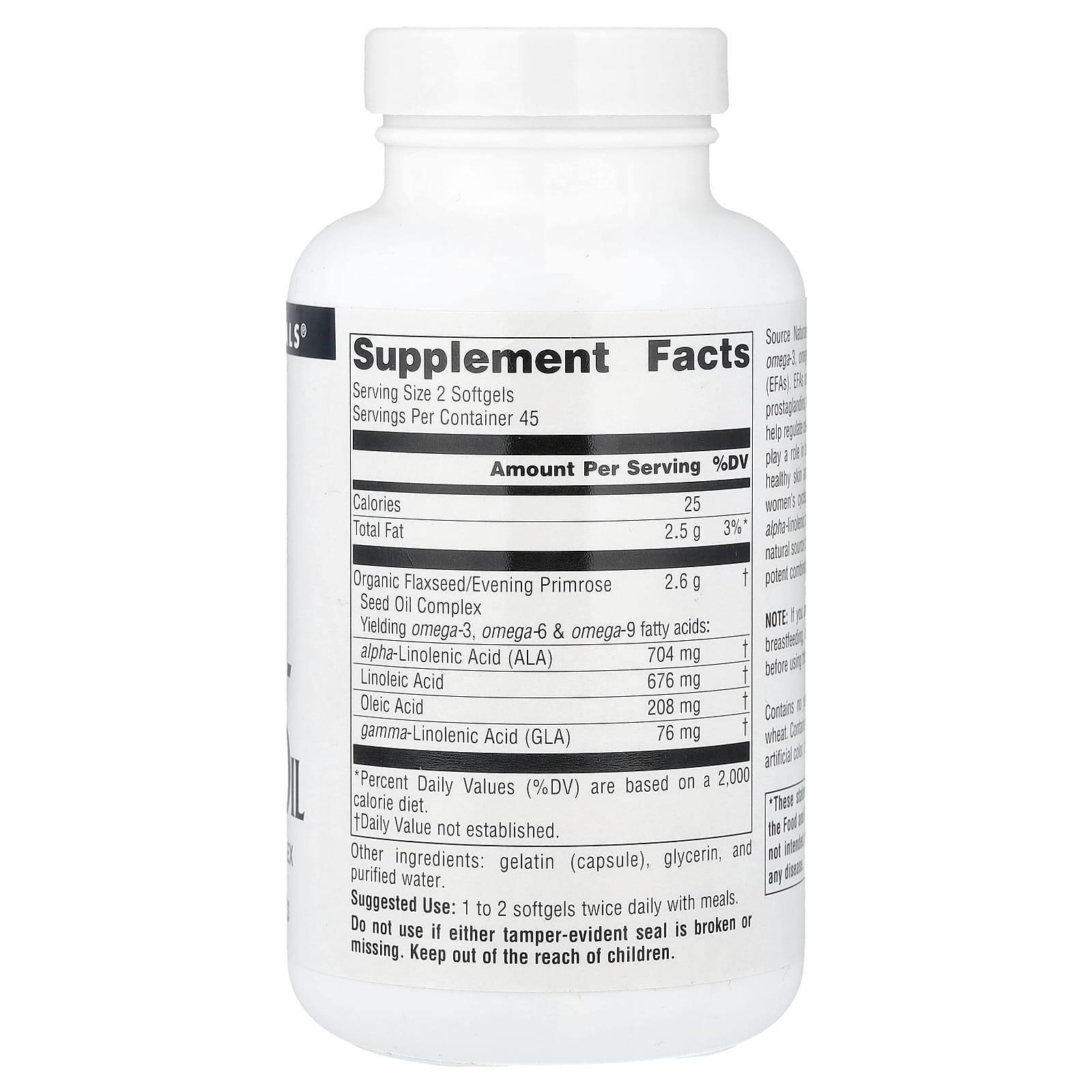 Source Naturals Óleo de Semente de Linhaça e Prímula 90 Cápsulas Softgel – Source Naturals Suplementos Ômegas e Óleos de Peixe (EPA/DHA) Óleo e Suplementos de Linhaça Saúde da Mulher Óleo de Prímula.