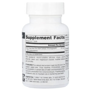 Source Naturals Pycnogenol® 50 mg 60 Comprimidos – Source Naturals Suplementos Antioxidantes Extrato de Casca de Pinheiro Picnogenol.