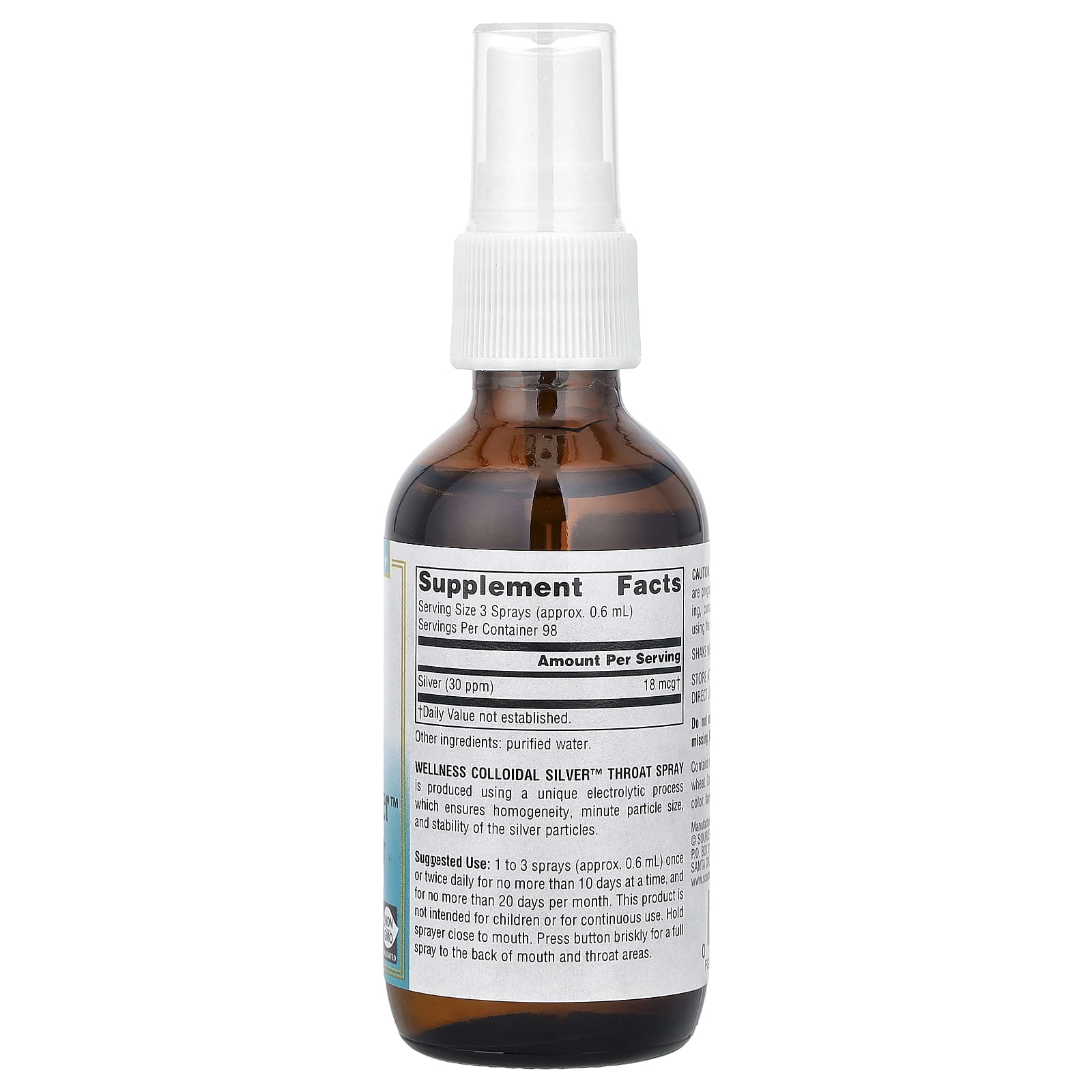 Source Naturals Spray para Garganta Wellness Colloidal Silver™ 5914 ml (2 fl oz) – Source Naturals Suplementos Minerais Prata Prata Coloidal.