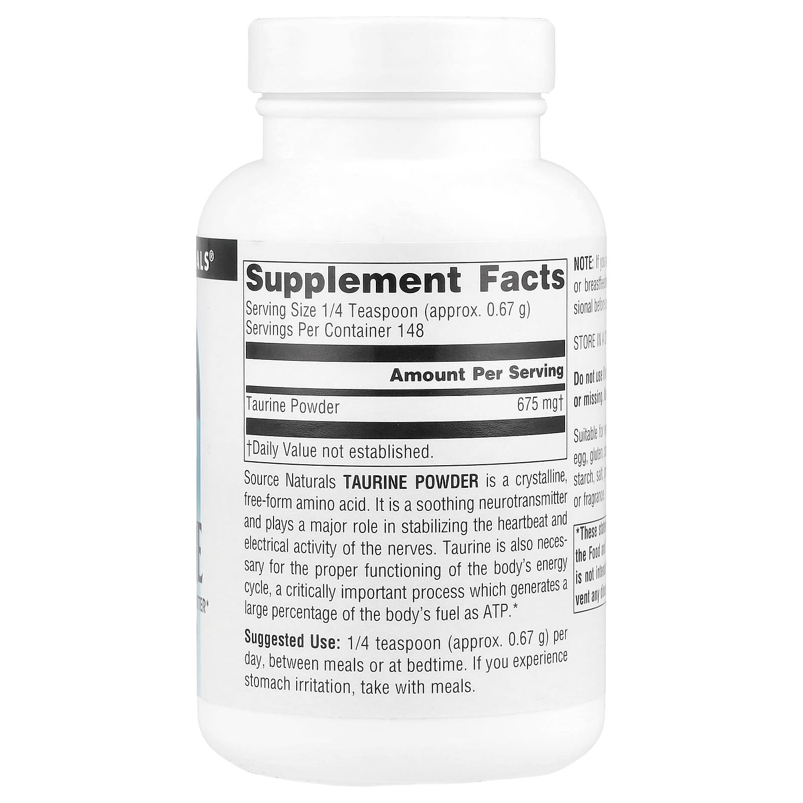 Source Naturals Taurina em Pó 353 oz (100 g) – Source Naturals Suplementos Aminoácidos Taurina.