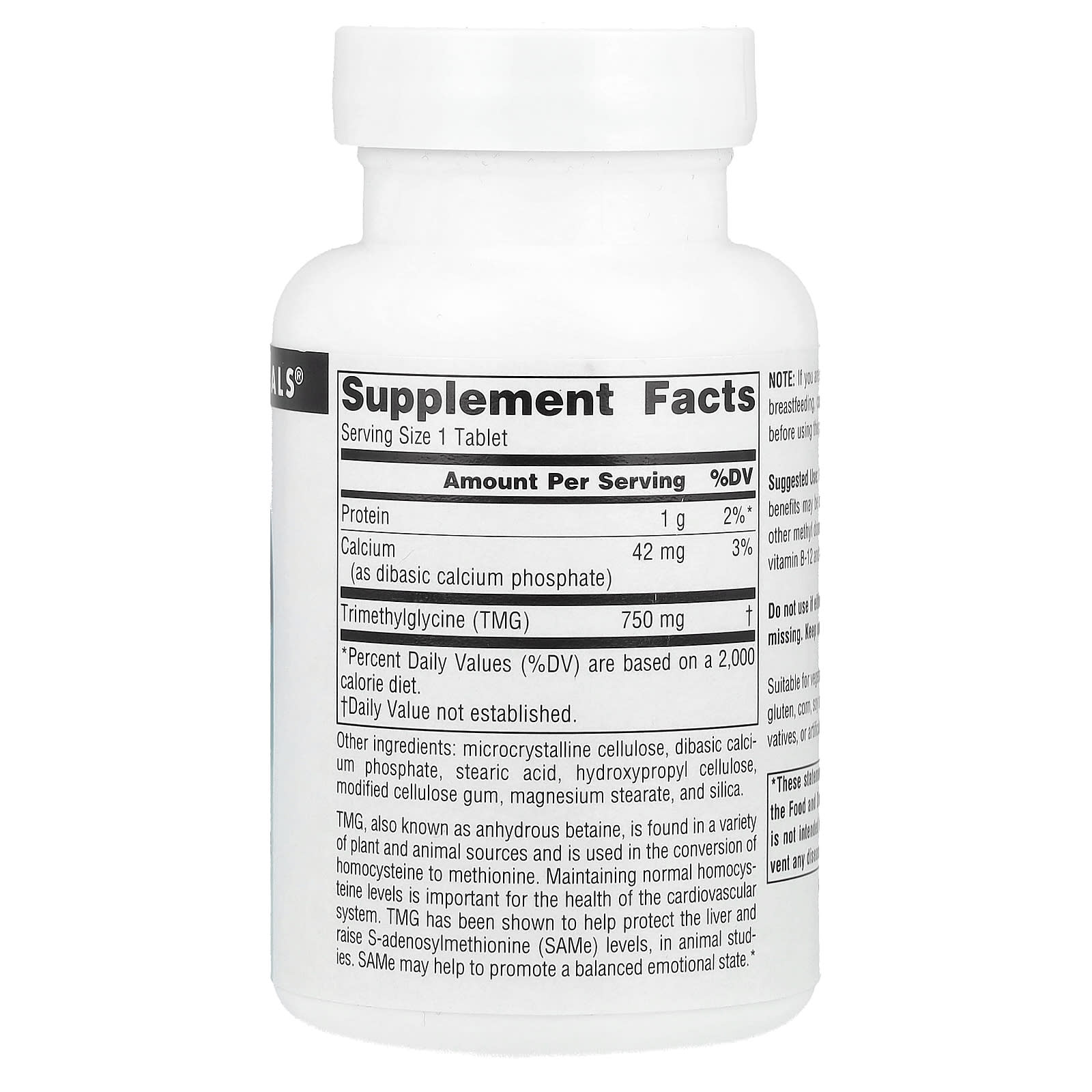 Source Naturals TMG 60 Comprimidos – Source Naturals Suplementos Saúde Intestinal TMG Trimetilglicina (Betaína Anidra).