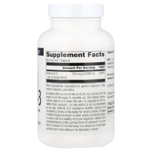 Source Naturals Vitamina D3 125 mcg (5.000 UI) 240 Cápsulas – Source Naturals Suplementos Vitaminas Vitamina D.