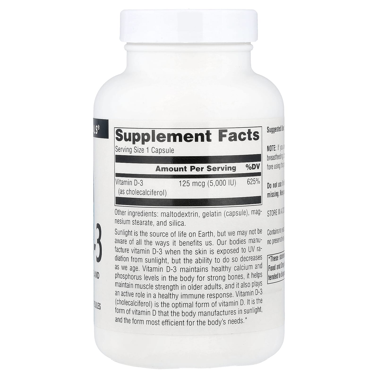A luz solar é a fonte da vida na Terra, mas podemos não estar cientes de todas as maneiras como ela nos beneficia. Nossos corpos produzem vitamina D-3 quando a pele é exposta à radiação ultravioleta da luz solar, mas a capacidade de fazê-lo diminui à medida que envelhecemos. A vitamina D-3 mantém níveis saudáveis de cálcio e fósforo no corpo para promover ossos fortes, ajuda a manter a força muscular em adultos mais velhos e também desempenha um papel ativo em uma resposta imunológica saudável. A vitamina D-3 (colecalciferol) é a forma ideal de vitamina D. É a forma de vitamina D que o corpo fabrica à luz solar e a forma mais eficiente para as necessidades do corpo.