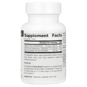 Source Naturals Vitamina K2+D3 30 Comprimidos – Source Naturals Suplementos Vitaminas Vitamina D3 e K2.