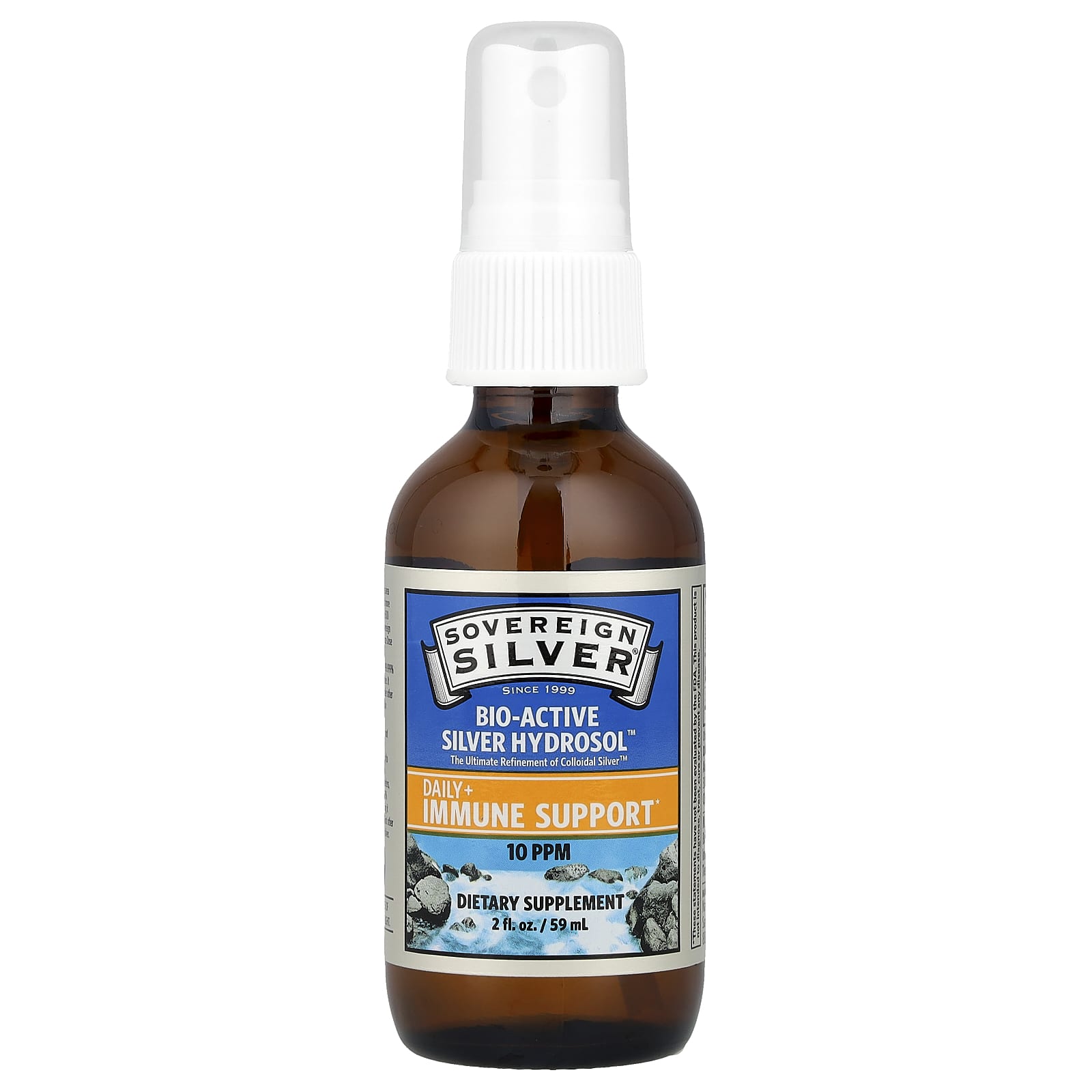 Sovereign Silver Bio-Active Silver Hydrosol Spray Fino em Spray 10 PPM 59 ml (2 fl oz) (10 ppm por 30 Borrifadas) – Sovereign Silver Suplementos Minerais Prata.