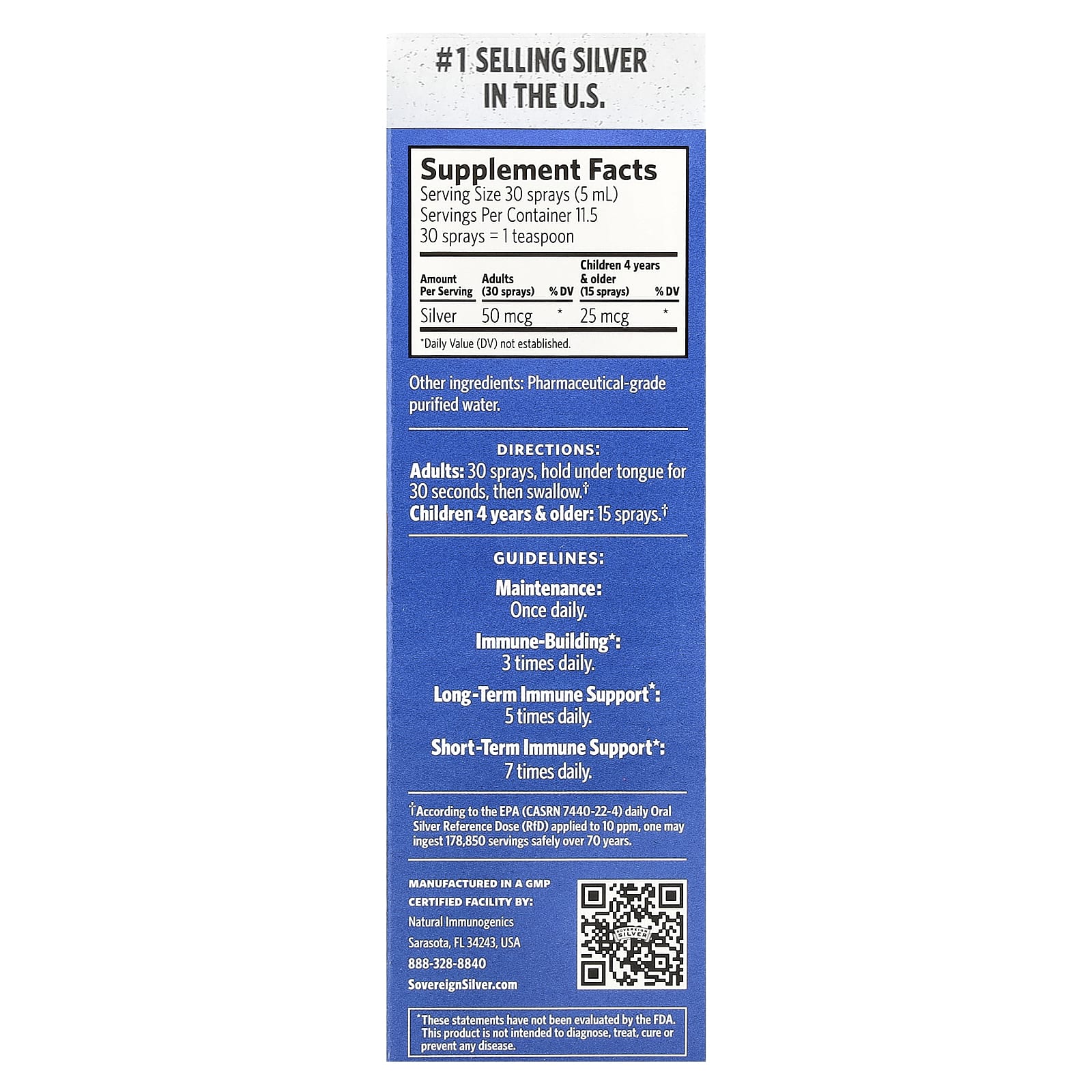 - Níveis sem precedentes de biodisponibilidade (tamanho das partículas de até 0,8 nanômetro) e bioatividade (mais de 98% de prata com carga positiva) tornam a Sovereign Silver mais eficaz do que as marcas que contêm até 500 ppm.