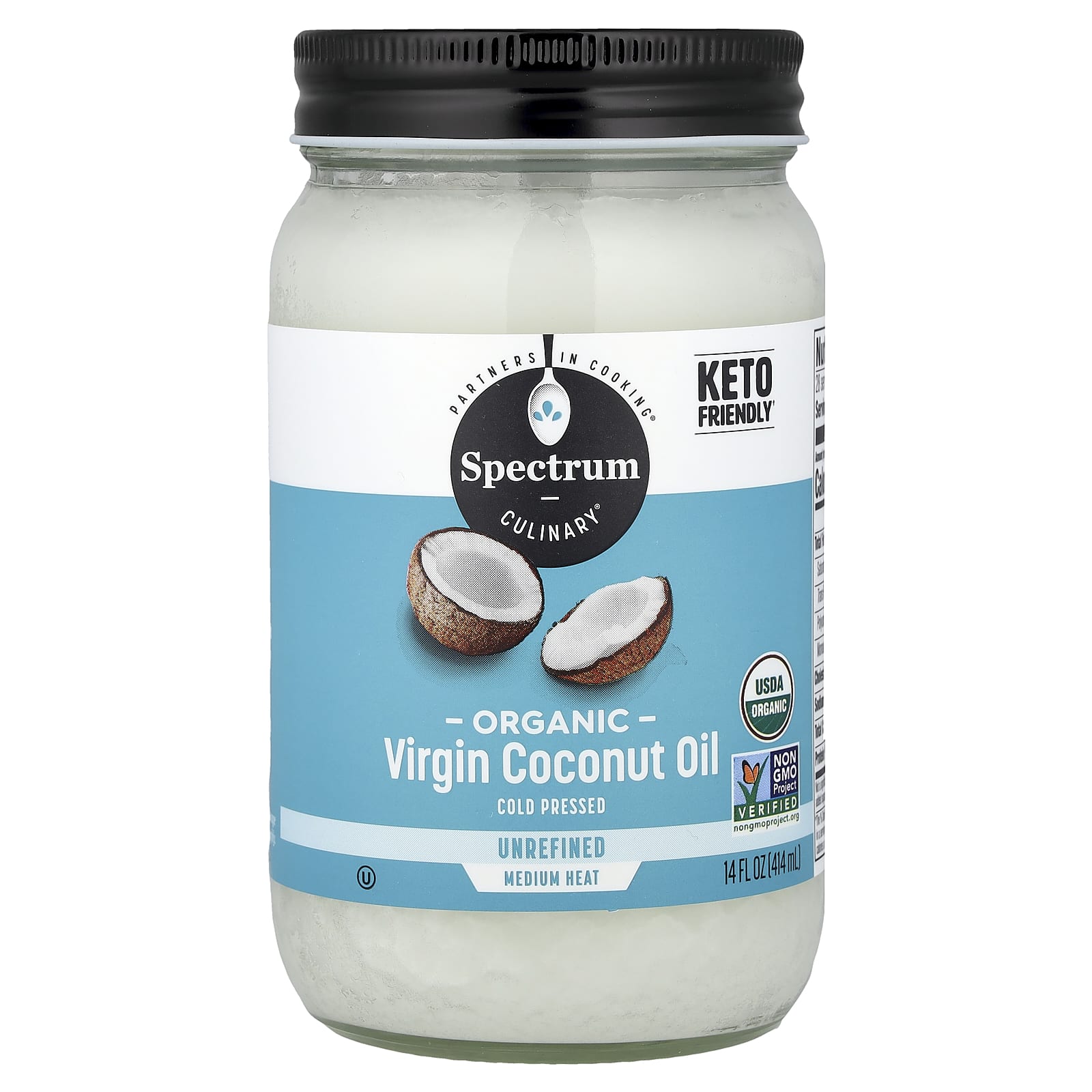 Spectrum Culinary Óleo de Coco Virgem Orgânico Não Refinado 414 ml (14 fl oz) – Spectrum Culinary Alimentos Óleos e vinagres Óleo de Coco Cuidados Pessoais Cuidados com o Corpo Óleos corporais e de massagem Óleo Corporal de Coco.