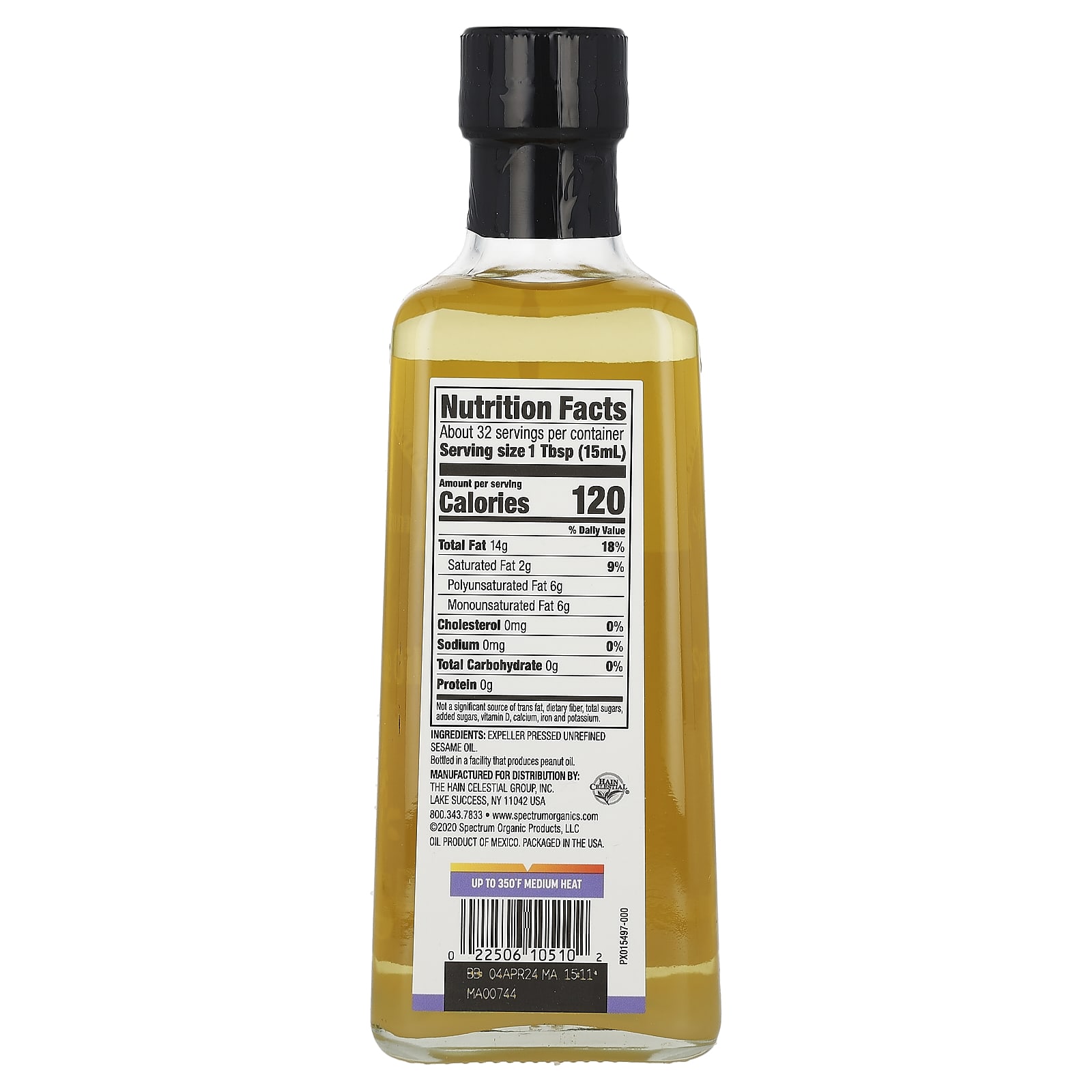Spectrum Culinary Óleo de Gergelim Não Refinado 473 ml (16 fl oz) – Spectrum Culinary Alimentos Óleos e vinagres Óleo de Gergelim.