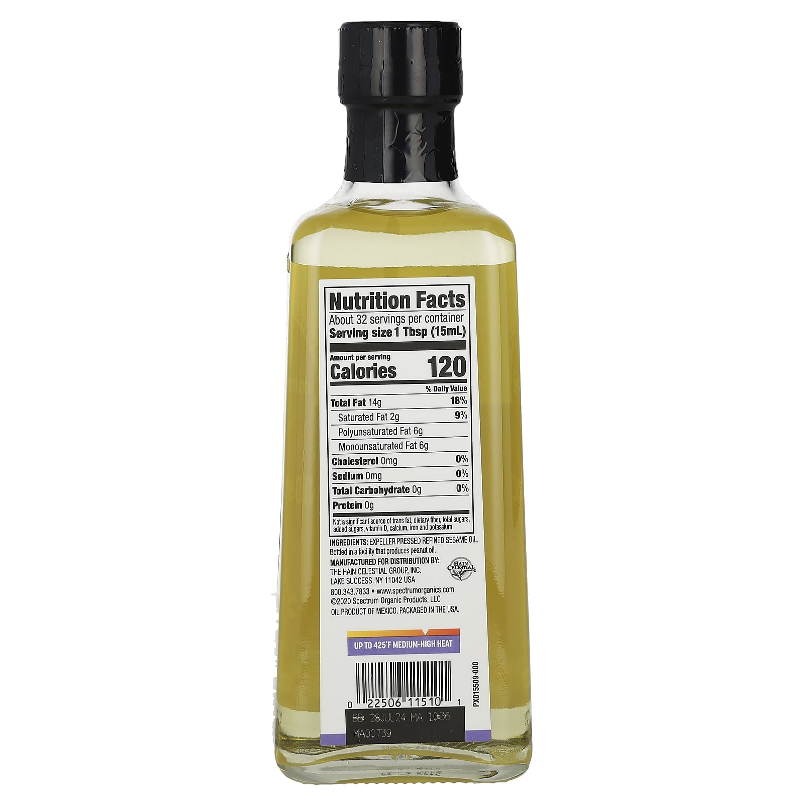 Spectrum Culinary Óleo de Gergelim Refinado 473 ml (16 fl oz) – Spectrum Culinary Alimentos Óleos e vinagres Óleo de Gergelim.