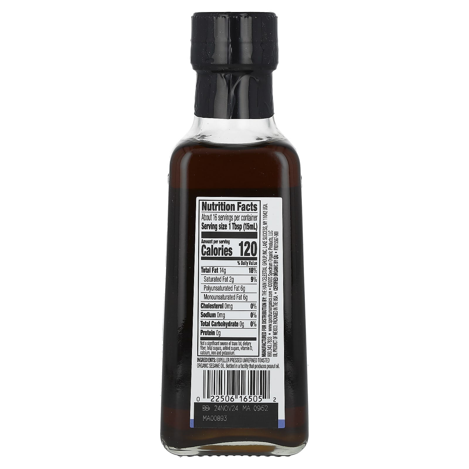 O Óleo de Gergelim Torrado Não Refinado Orgânico da marca Spectrum® adiciona sabor e aroma intensos de gergelim às receitas asiáticas de fritos, bem como a noodles soba, Wontons de camarão com molho e molho para salada de frango chinesa.