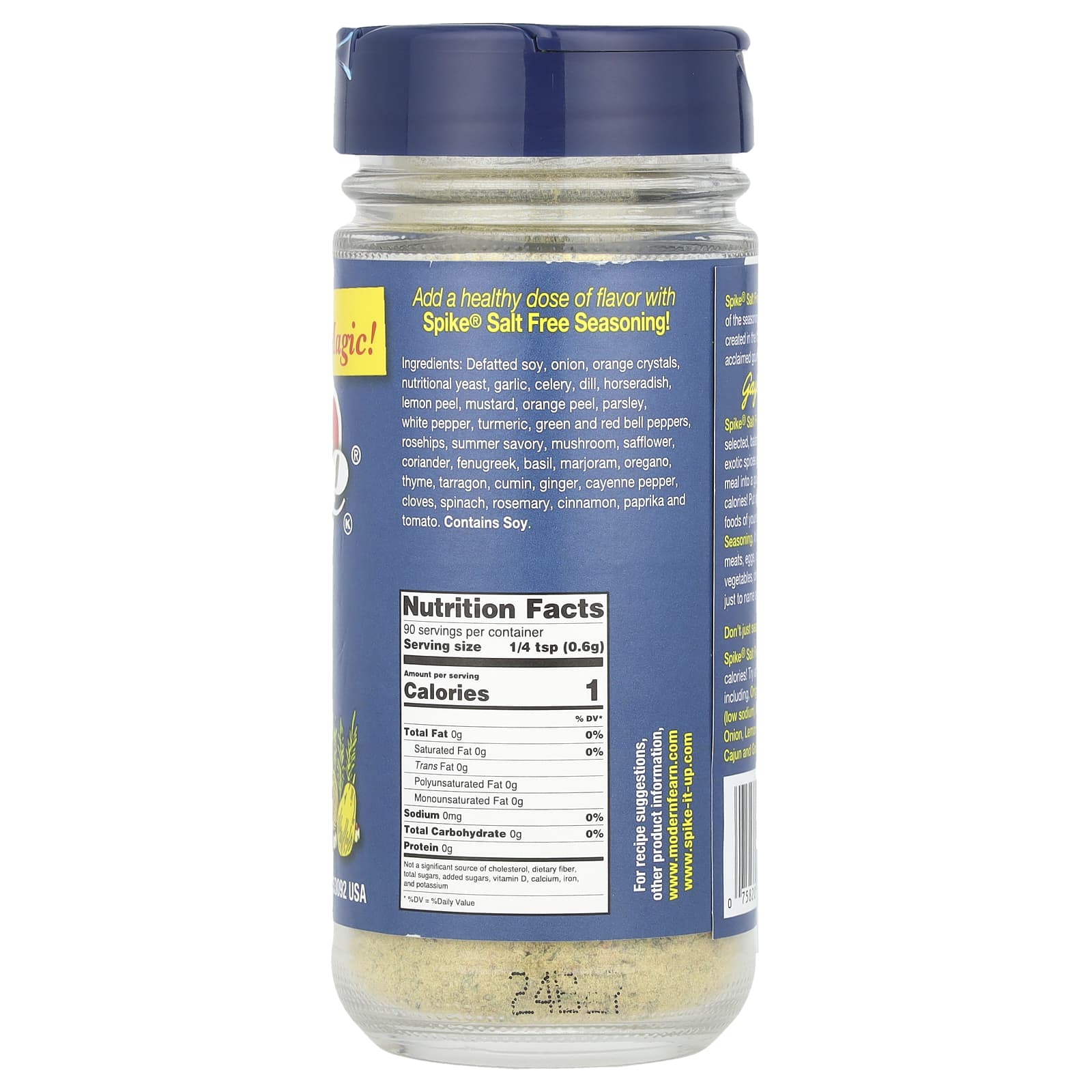Os Temperos Sem Sal da Spike® são uma mistura cuidadosamente selecionada e branqueada de 35 ervas saborosas, especiarias exóticas e vegetais que transformarão cada refeição em uma delícia gourmet sem sal ou calorias! Coloque fim aos alimentos insípidos e insípidos de sua dieta sem sal com o Tempero Sem Sal da Spike®.