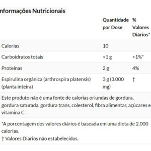 2. Fonte Rica em Proteínas: Spirulina é conhecida por ser uma excelente fonte de proteínas vegetais. Ideal para quem busca aumentar a ingestão de proteínas de origem não animal, este suplemento é uma escolha prática para complementar suas necessidades nutricionais.