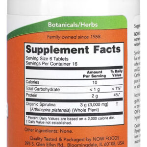 Spirulina Orgânica 500mg Now Foods 100 Tab + Porta Cápsulas