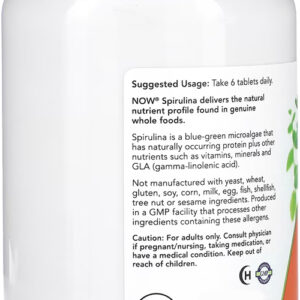 Spirulina Orgânica 500mg Now Foods 500 Tablets Rica em Proteína Energia Sustentada – No Brasil