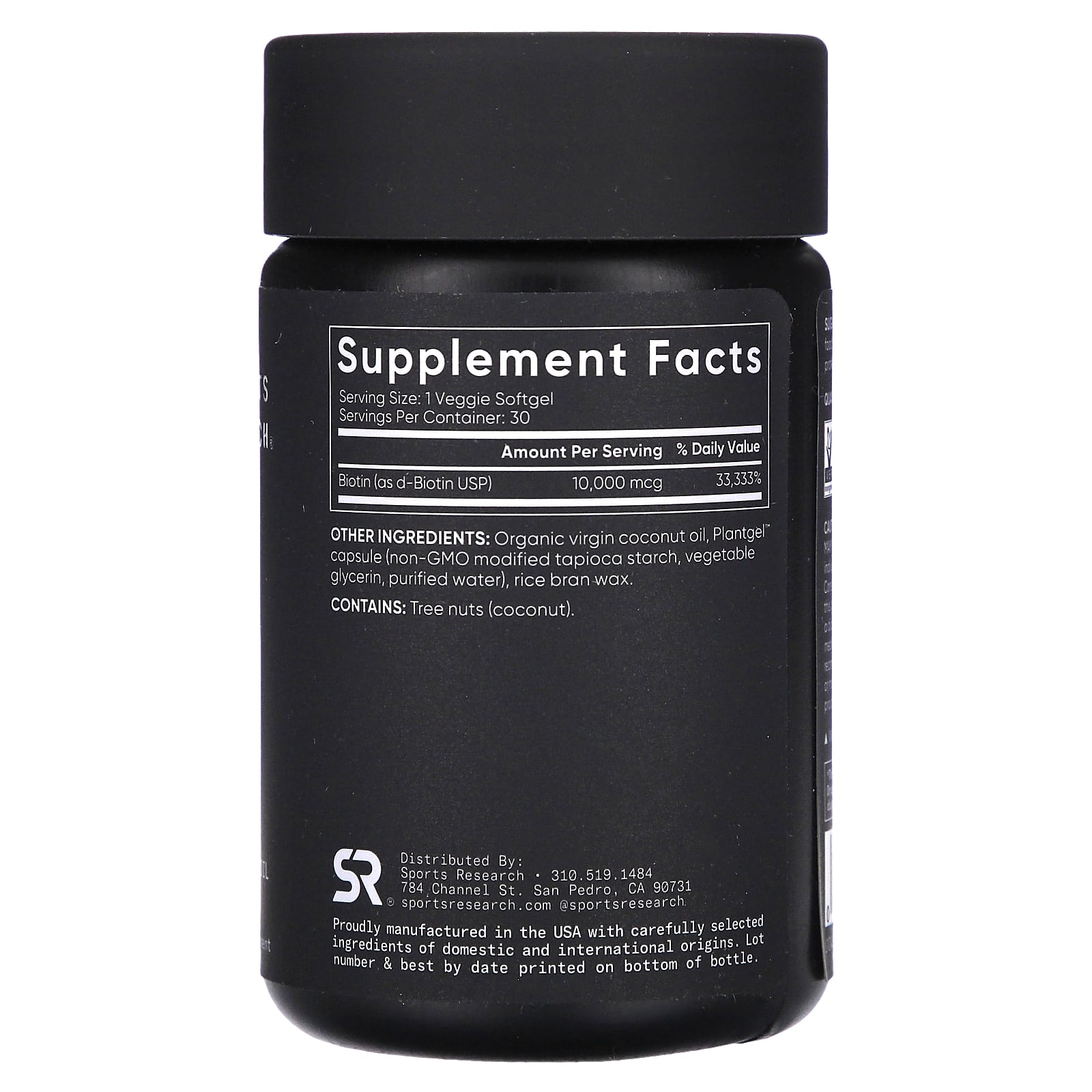 Sports Research Biotina com Óleo de Coco 10.000 mcg 30 Cápsulas Softgel Vegetais