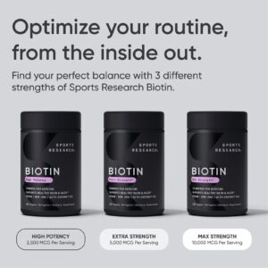 Sports Research Biotina com Óleo de Coco 10.000 mcg 30 Cápsulas Softgel Vegetais – Sports Research Suplementos Cabelos, Pele e Unhas Vitamina B7 (Biotina).