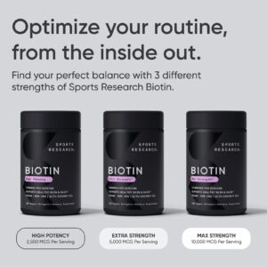 Sports Research Biotina com Óleo de Coco 2.500 mcg 120 Cápsulas Softgel Vegetais – Sports Research Nutrição Esportiva Suplementos Esportivos Suplementos Cabelos, Pele e Unhas Vitamina B7 (Biotina).