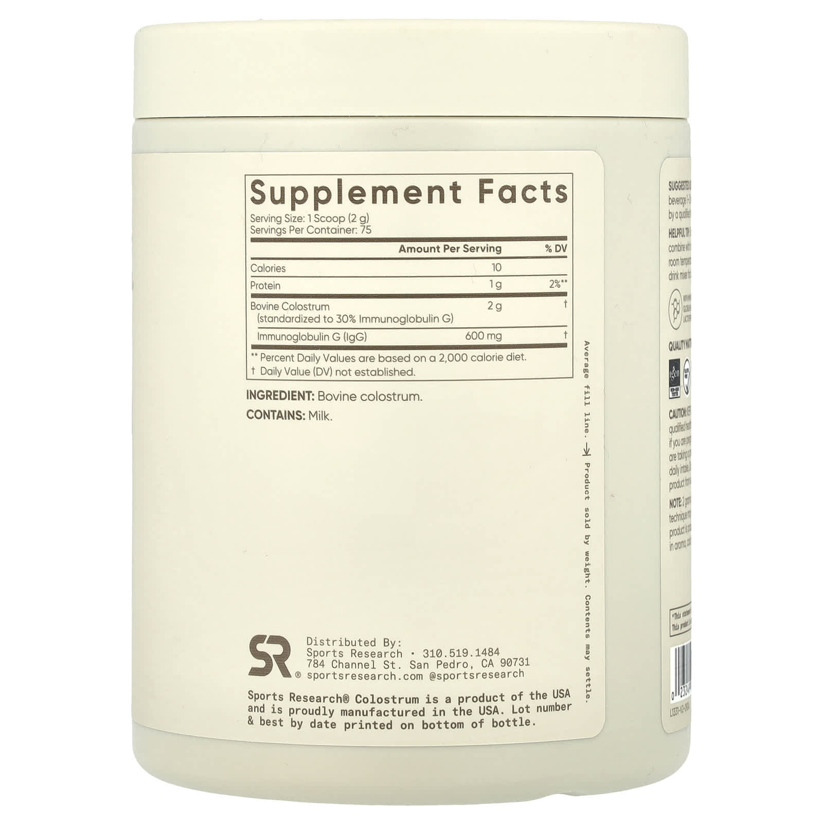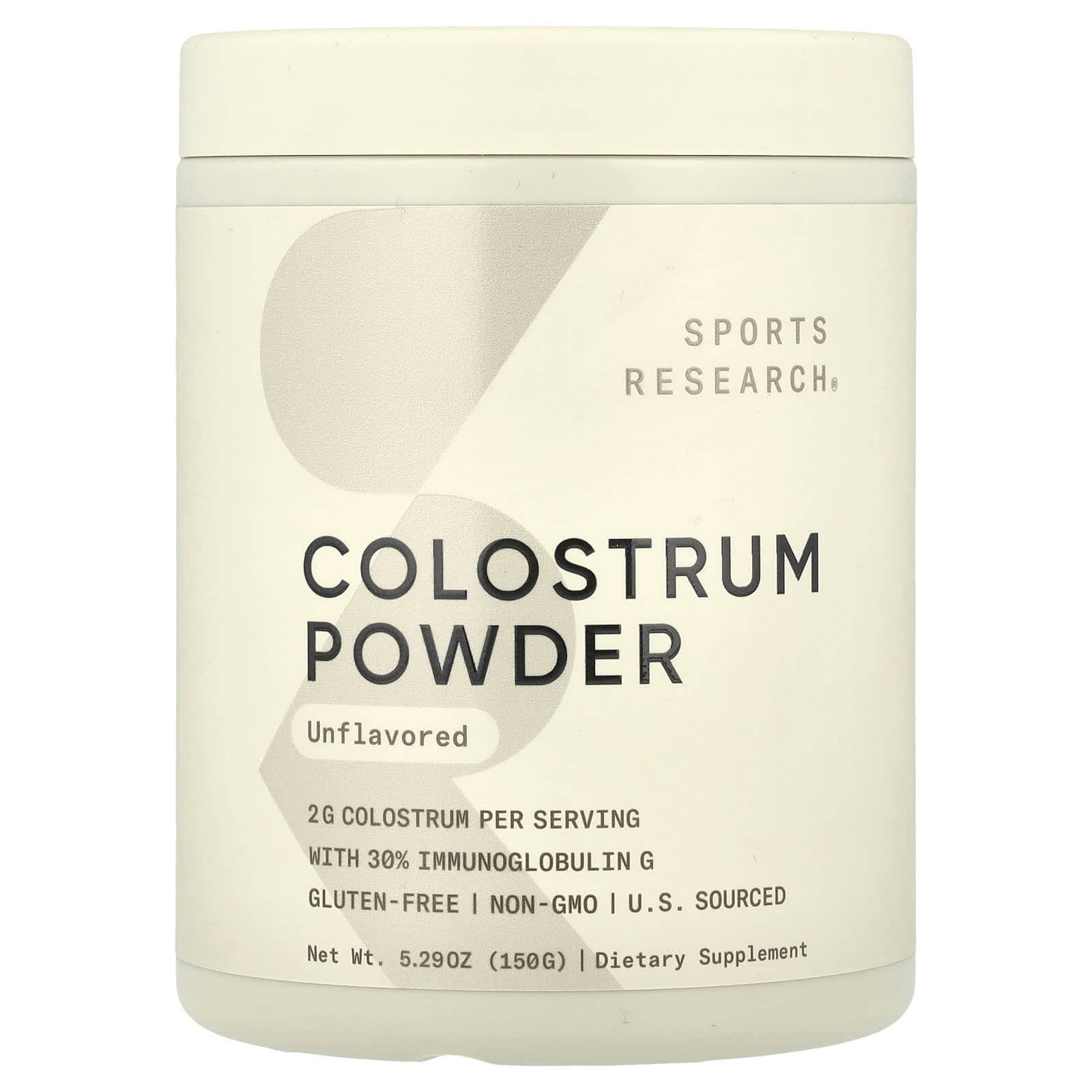 Sports Research Colostro em Pó Sem Sabor 150 g (529 oz) – Sports Research Suplementos Saúde Intestinal Colostrum.