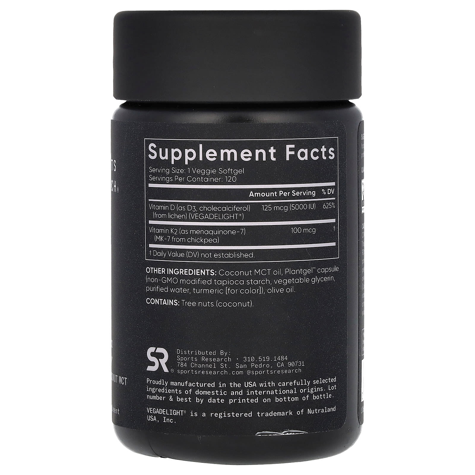 Sports Research D3 + K2 À Base de Plantas 120 Cápsulas Softgel Vegetais – Sports Research Suplementos Vitaminas Vitamina D3 e K2 Vitamina D.