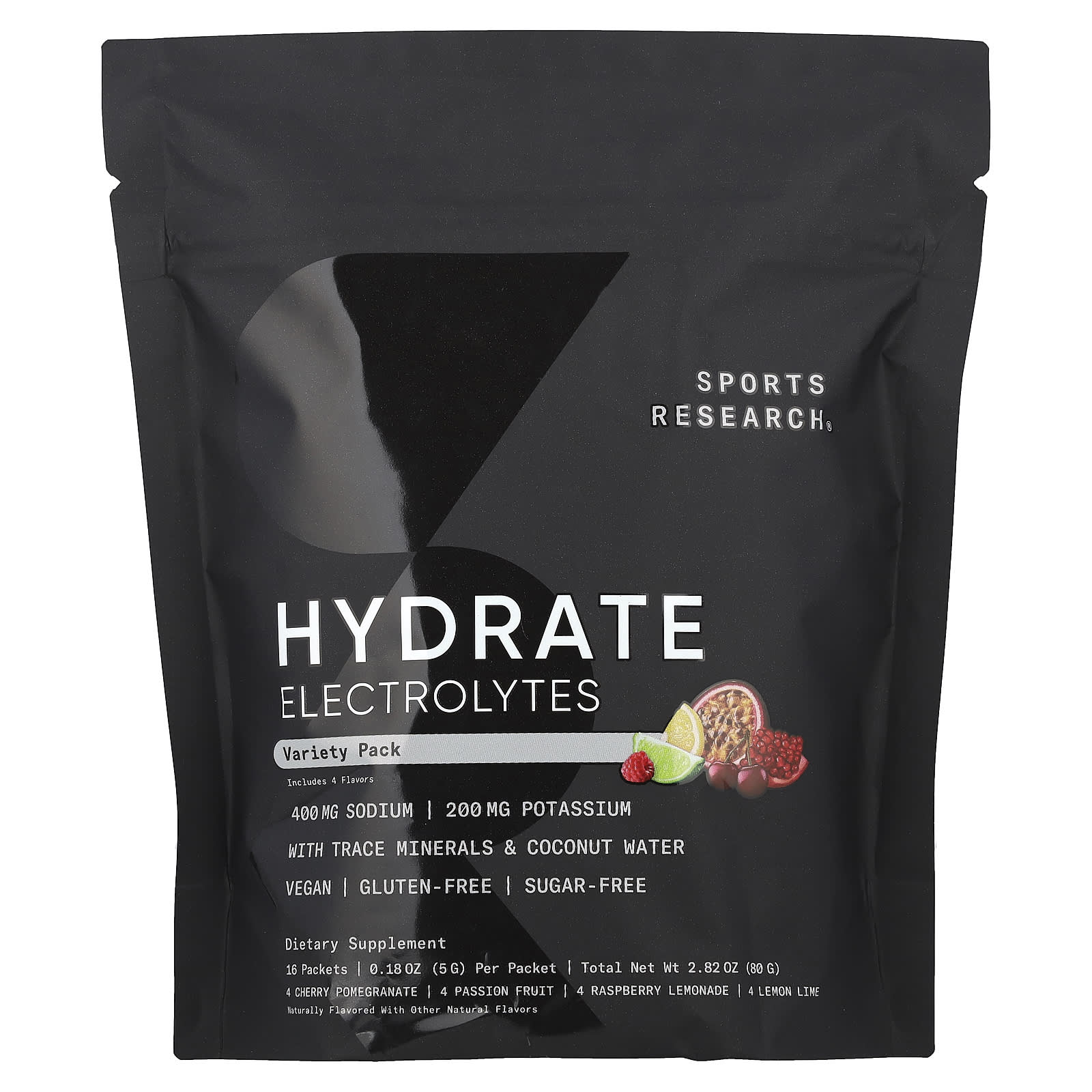 Sports Research Eletrólitos para Hidratação Embalagem Variada 16 Embalagens 5 g (018 oz) Cada – Sports Research Nutrição Esportiva Hidratação e Eletrólitos.