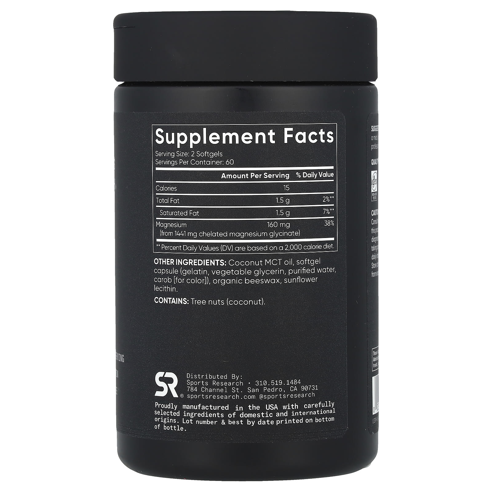 Sports Research Glicinato de Magnésio 120 Cápsulas Softgel (80 mg por Cápsula Softgel) – Sports Research Suplementos Minerais Magnésio Glicinato de Magnésio.