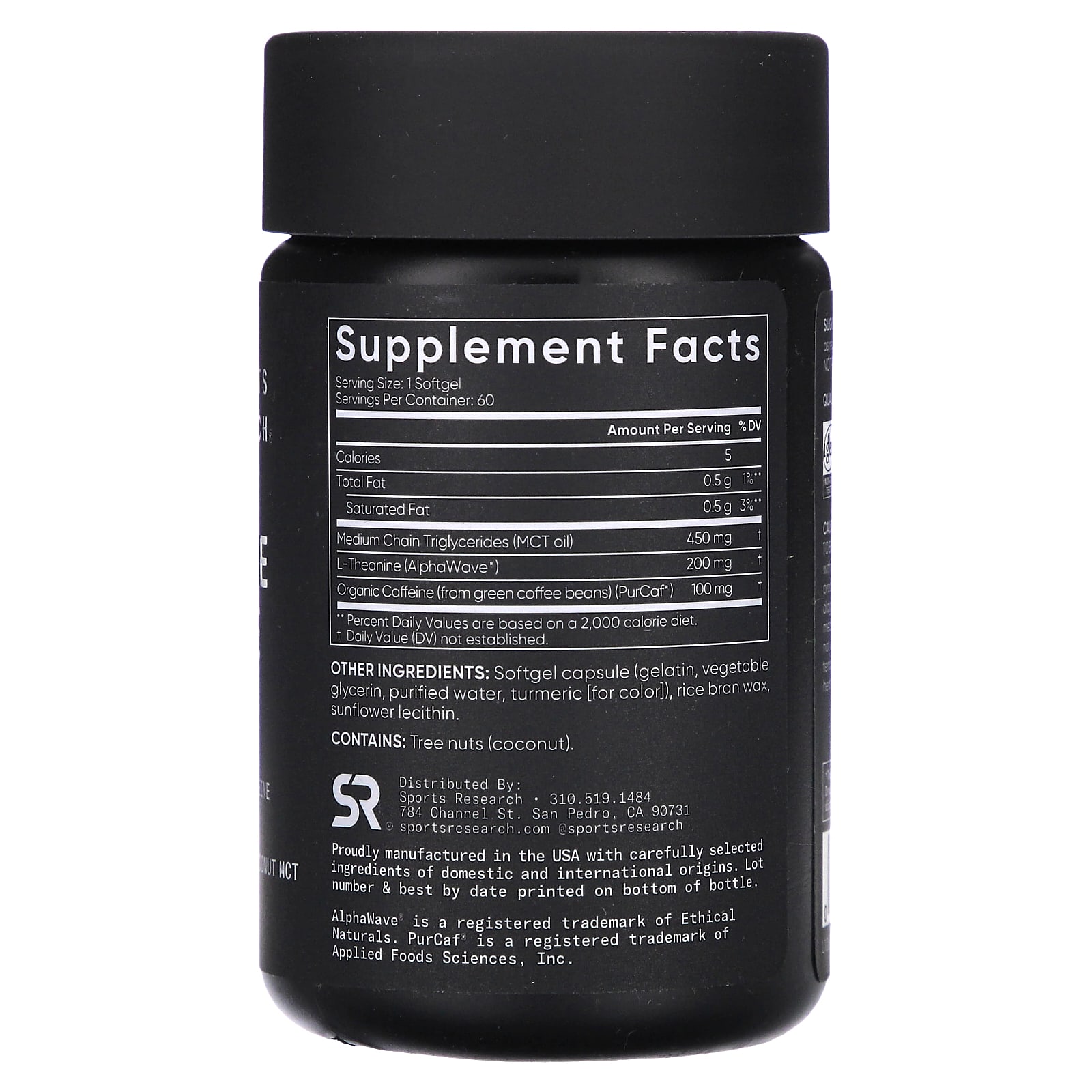 Sports Research, L-teanina e Cafeína, Fórmula 2 em 1, 60 Cápsulas Softgel – Sports Research Suplementos Aminoácidos L-Teanina.