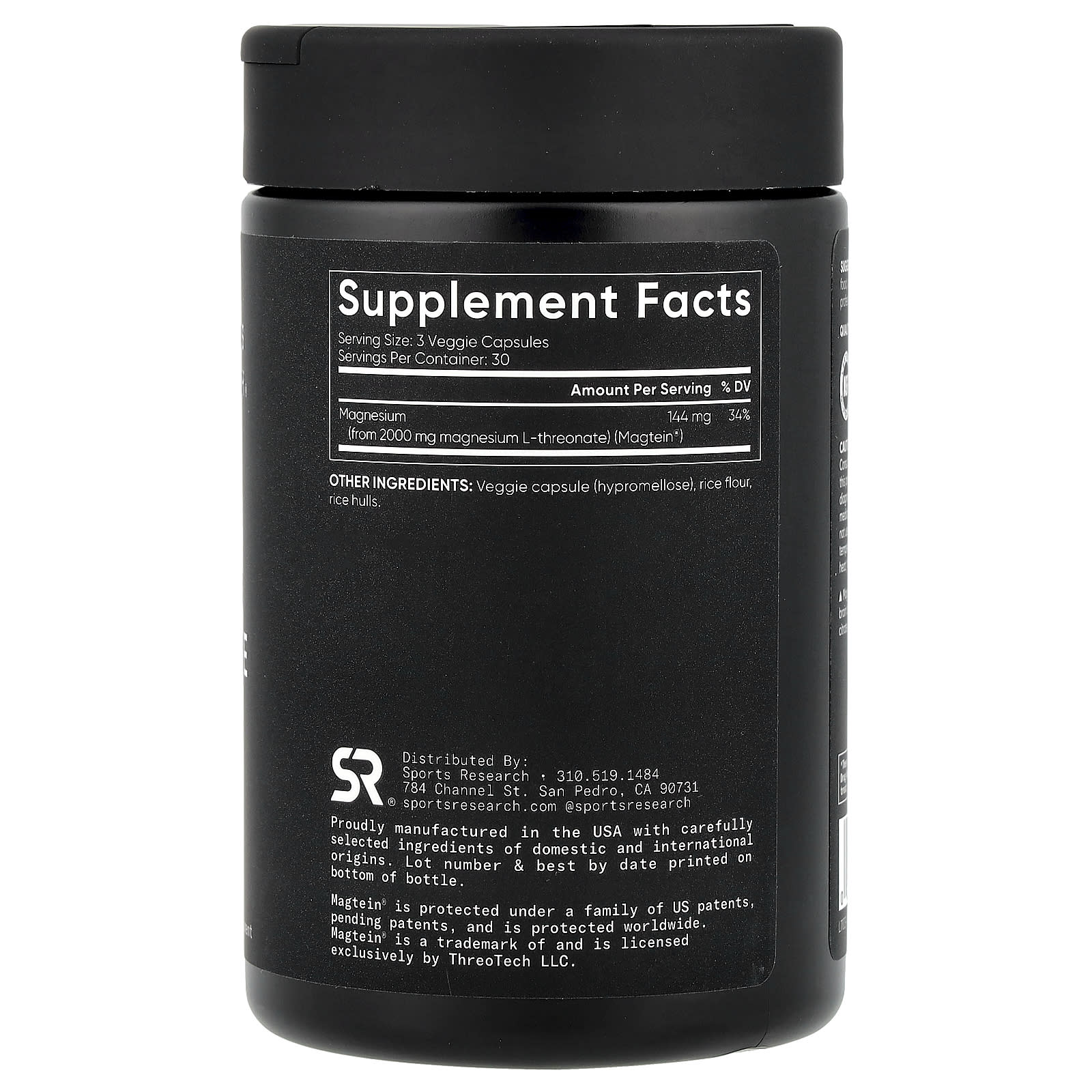 Sports Research Magtein® L-treonato de Magnésio 90 Cápsulas Vegetais (666 mg por Cápsula) – Sports Research Suplementos Minerais Magnésio L-Treonato de Magnésio Nutrição Esportiva Suplementos Esportivos.