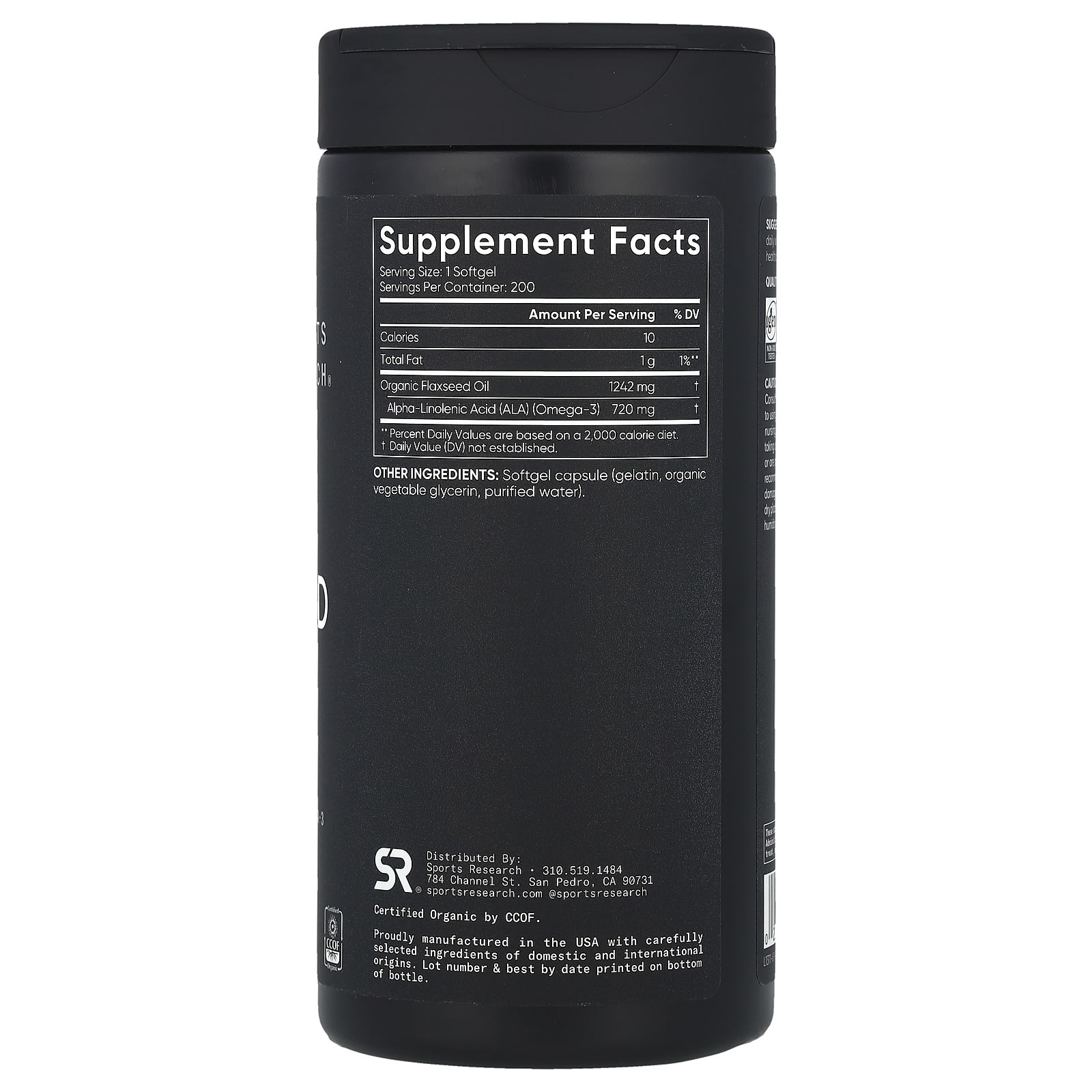 Sports Research Óleo de Linhaça 200 Cápsulas Softgel – Sports Research Suplementos Ômegas e Óleos de Peixe (EPA/DHA) Óleo e Suplementos de Linhaça.