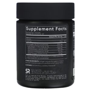 O Óleo de Peixe Ômega-3 SR contém níveis ultraconcentrados de EPA e DHA (995 mg) em cada cápsula softgel e é proveniente de peixes selvagens usando processos avançados de purificação e destilação molecular.