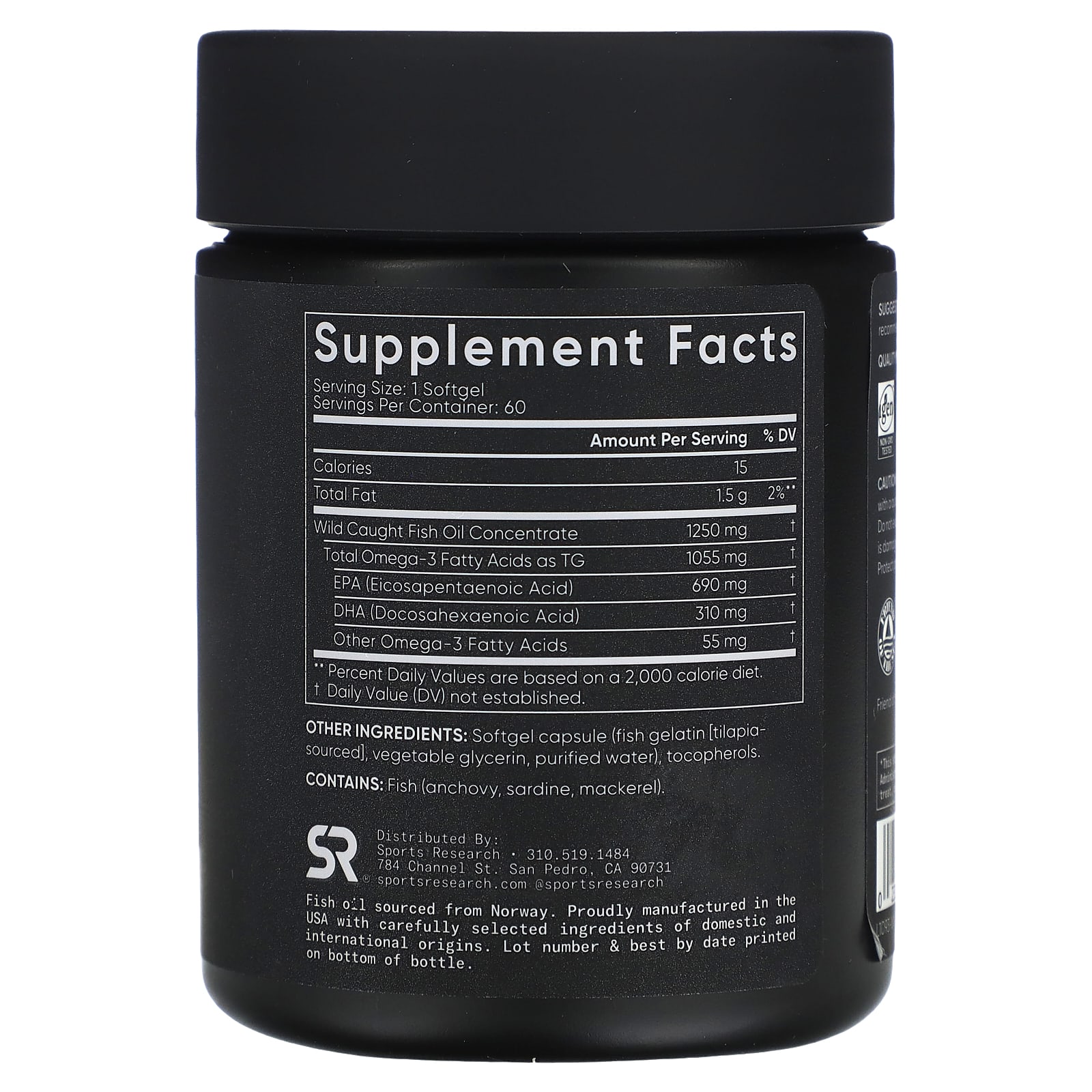 Sports Research Óleo de Peixe Ômega-3 Força Tripla 1.250 mg 60 Cápsulas Softgel – Sports Research Nutrição Esportiva Suplementos Esportivos Fish-Oil, Omegas, Sports Suplementos Ômegas e Óleos de Peixe (EPA/DHA) Ômega 3 e Óleo de Peixe.