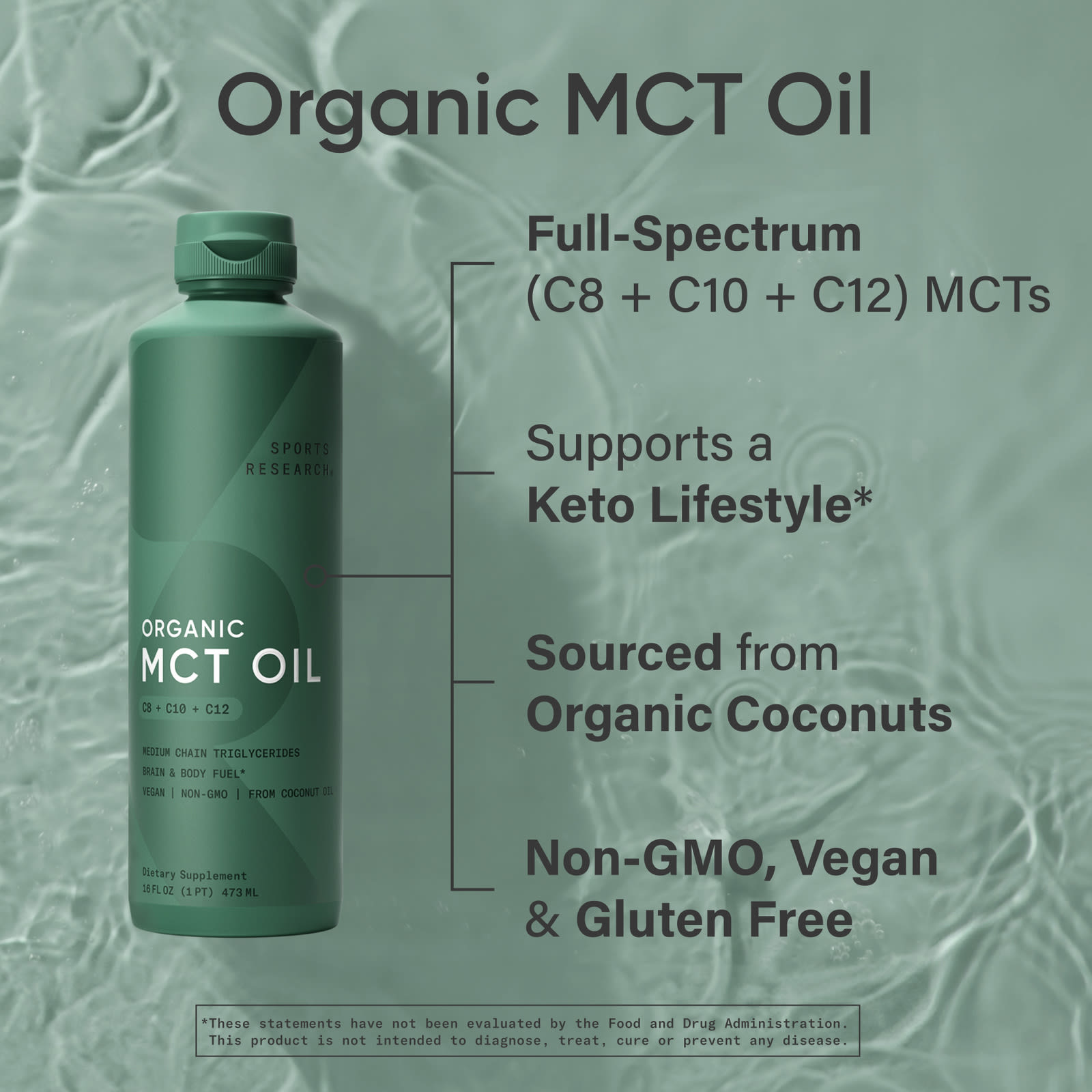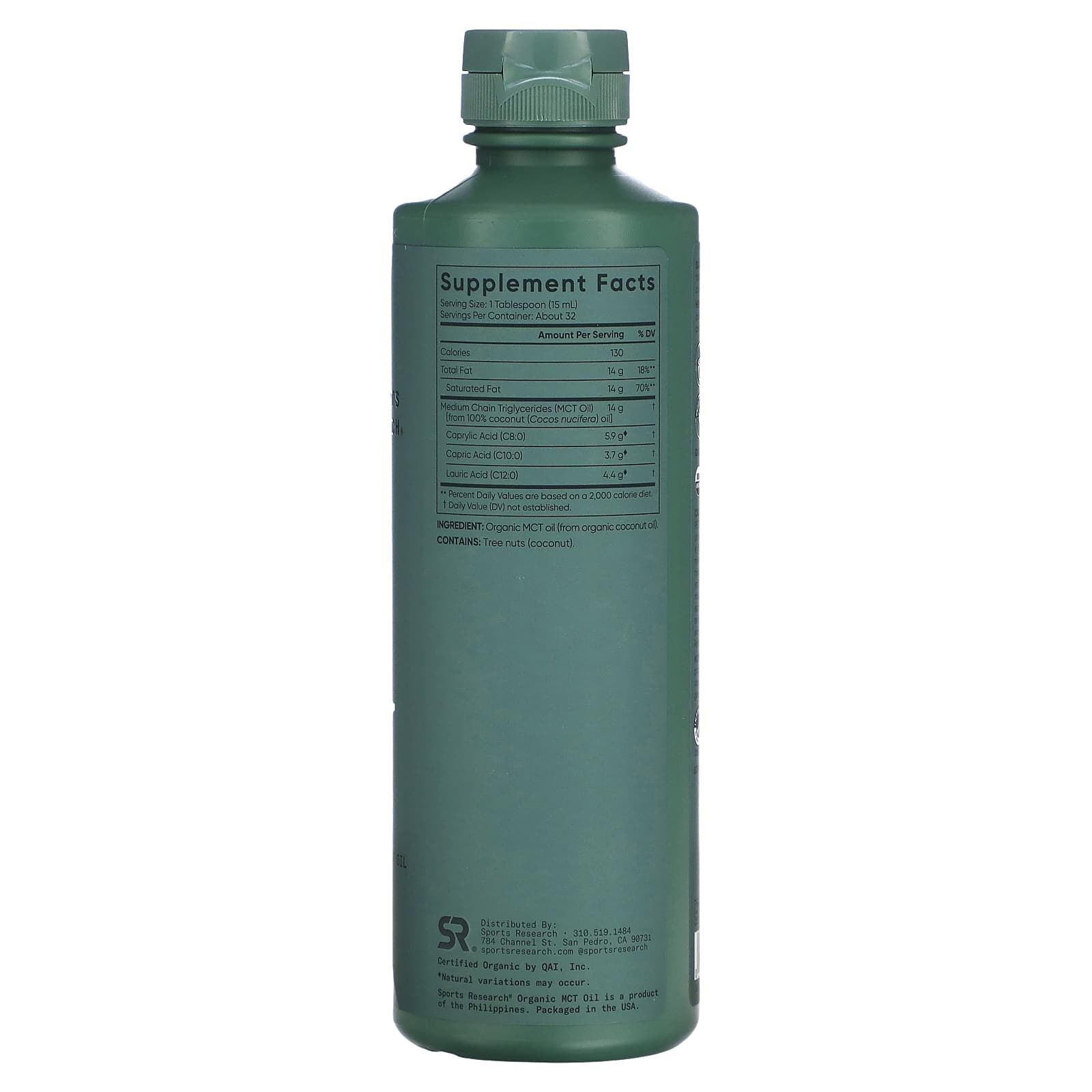 Sports Research Óleo TCM Sem Sabor 473 ml (16 fl oz) – Sports Research Suplementos Controle de peso Óleo de TCM e Ácido Caprílico.