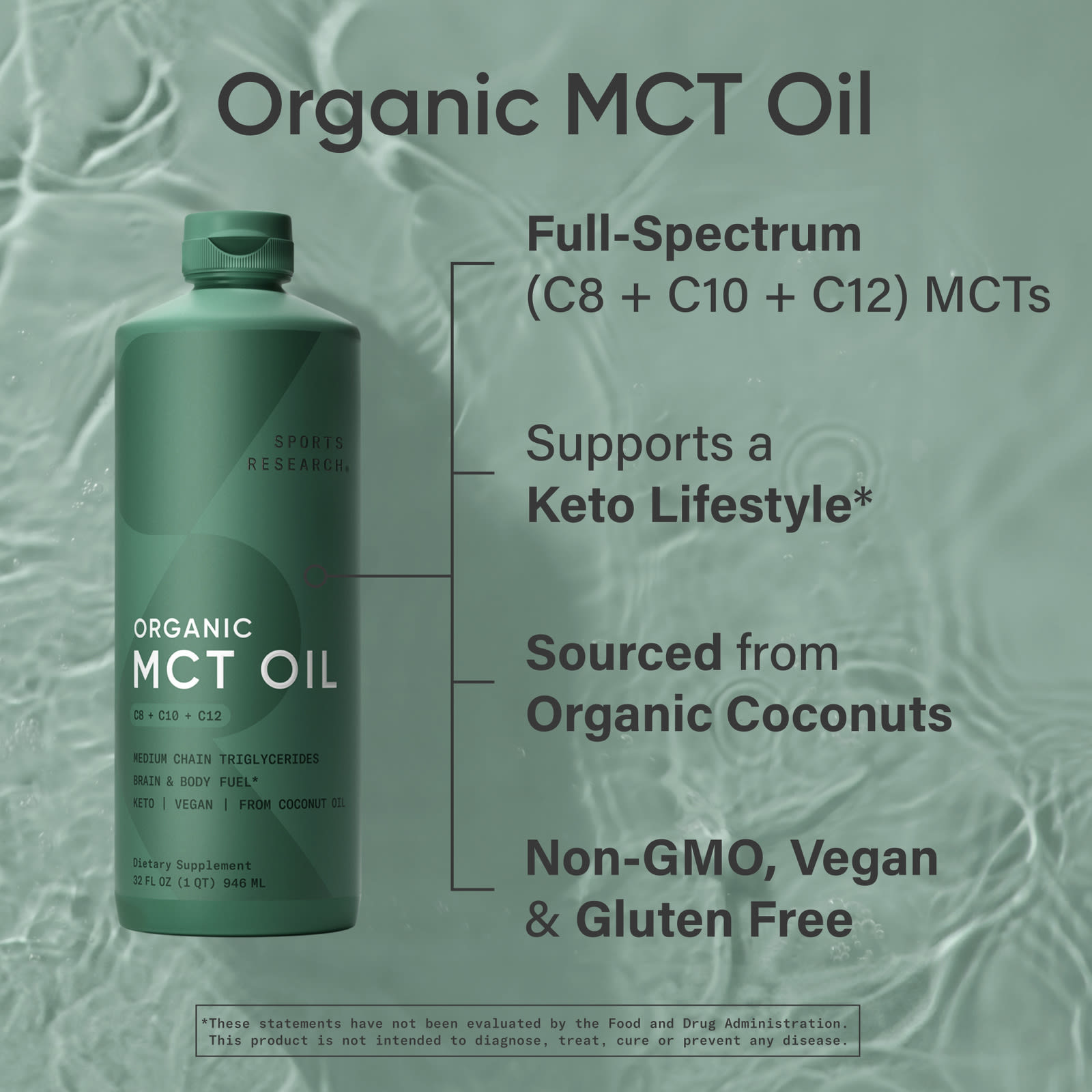 Sports Research Óleo TCM Sem Sabor 946 ml (32 fl oz) – Sports Research Suplementos Controle de peso Óleo de TCM e Ácido Caprílico.
