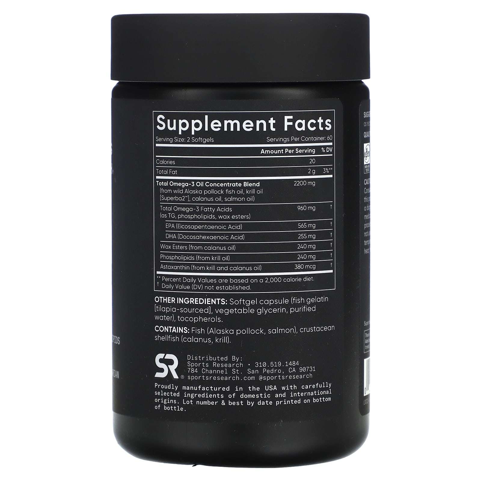 Sports Research Ômega-3 Total 120 Cápsulas Softgel – Sports Research Nutrição Esportiva Suplementos Esportivos Fish-Oil, Omegas, Sports Suplementos Ômegas e Óleos de Peixe (EPA/DHA) Ômega 3 e Óleo de Peixe.