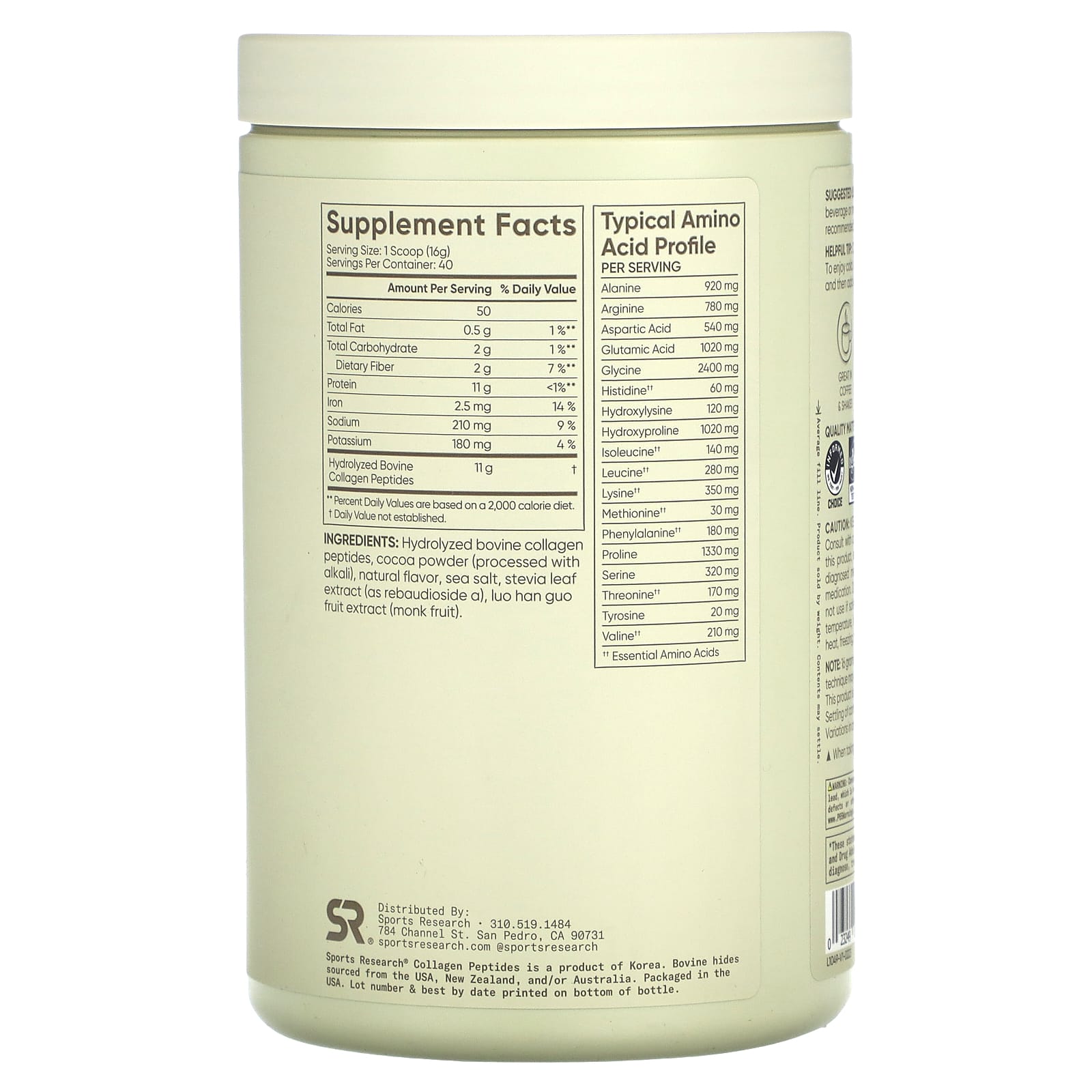 Sports Research Peptídeos de Colágeno Chocolate Amargo 640 g (2258 oz) – Sports Research Suplementos Ossos, Articulações e Cartilagem Colágeno, Suplementos.
